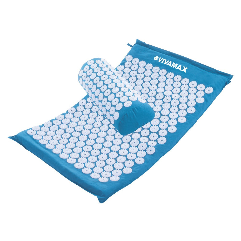 Akupresszúrás matrac és párna - a revitalizáló relaxációért A több száz apró tüskével rendelkező szivacsos matrac és párna stimulálja a test akupunktúrás pontjait, így hozzájárul a revitalizációhoz. Az akupunktúrás pontok stimulálása javítja a szervezet vérkeringését, csökkenti az izomfeszülést, növeli az endorfin (boldogsághormon) termelését. Termékjellemzők: A matrac mérete: 68 x 42 x 2,5cm A párna mérete: 39 x 15 x 10 cm A tüskék száma: 230 db a matracon és 74 db a párnán (néhány eltérés lehet) A tüskék mérete: átmérő: 3 cm, a tüskék magassága: 3,5-4 mm Mely problémák kezelésében nyújthat segítséget a Vivamax akupresszúrás masszázs matrac és párna az akupresszúrás pontok stimulálása révén? Fejfájás, migrén Álmatlanság, stressz Ízületi fájdalmak Hát-, váll- és nyakfájás, reumatikus panaszok Vérkeringés- és emésztés serkentése Izmok lazítása Edzés utáni regeneráció Tippek a termék használatához: Mennyi ideig és naponta hányszor érdemes használni? Akár 10 perces használat is nagyban hozzájárulhat a jótékony folyamatok elindításához, többek között a vérkeringés serkentéséhez is, amely elősegítheti a tápanyagok felszívódását a szövetekben. Előfordulhat, hogy az első percekben kellemetlennek érzi a használatot, de ez leggyakrabban néhány percen belül enyhül. A matracot és a párnát napi 1-2 alkalommal javasolt használni és maximum 20-30 percen keresztül. Előkészületek a párna és a matrac használata előtt A kívánt hatás és a kezelendő területtől függően helyezze a matracot/párnát a földre vagy székbe/fotelbe. Ügyeljen arra, hogy vékony ruházatot viseljen és próbáljon meg nyugodtan feküdni/ülni, miközben mélyeket lélegzik. Mely területeken használhatják a matracot és a párnát? Még a matracot (párnával kiegészítve) fekvő helyzetben történő használaton felül fotelbe/székbe helyezve akár a hát, farizom, comb és váll, továbbá földre terítve, majd ráállva a talp kezelésére is használhatja, addig a párnát önállóan a nyak és fej közötti hajlatba helyezve elsősorban az ezen területeken található izmok oldására és a fejfájás, migrén oldására is, továbbá a stressz- és alvászavarok csökkentésére is használhatja. 1. Feküdjön a matracra és helyezze a párnát a nyaki hajlatba! érintett testrészek: nyak, hát, váll, csípő, fenék, lapocka az alábbi területeken fejtheti ki hatását: izmok-, fejfájás-, migrén oldása, stressz- és alvászavarok csökkentése 2. Helyezze a matracot egy székbe/fotelbe úgy, hogy a háttámlára is érjen, majd foglaljon rajta helyet! érintett testrészek: hát, csípő, fenék, comb az alábbi területeken fejtheti ki hatását: izmainak oldása és a vérkeringés stimulálása 3. Terítse a matracot a földre és álljon rá, vagy üljön le és tegye talpát a matracra érintett testrészek: talp az alábbi területeken fejtheti ki hatását: talpi reflex zónák stimulálása További felhasználási javaslatokat találhat a mellékelt ábrán. Matrac/párnahuzat tisztítása: Csak a huzatot tisztítsa kézi úton, langyos, enyhén mosószeres vízzel, miután kivette belőle a szivacsot. A tüskékkel különös elővigyázatossággal járjon el. TIPP: Javasoljuk, hogy próbálja ki a VivaFit akupresszúrás masszázspapucsot is! (Cikkszám: GYVFMP...)