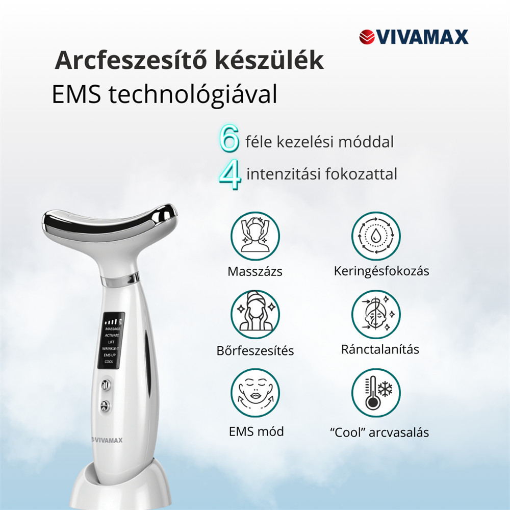 Az arc- és nyakvonalhoz illeszkedő készülék sokoldalú arcápolást biztosít: mikrovibrációs funkció, fotonterápia és EMS (elektromos idegstimuláció) és hidegterápia!