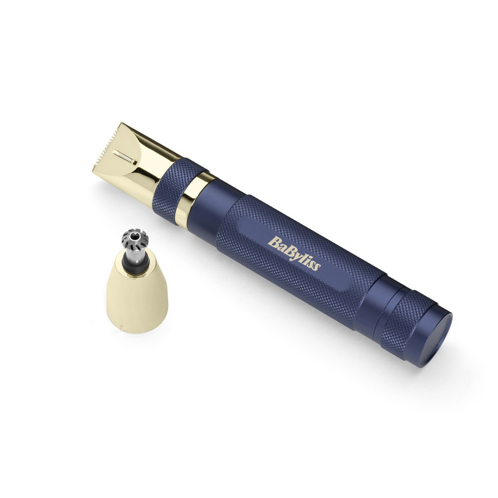 A BaByliss E112E Super-X Metal blue edition készülék tökéletesen alkalmas a nem kívánt orr- és fülszőrzet gyors, biztonságos és fájdalommentes eltávolítására. Innovatív gyémánt alakú rozsdamentes acél pengerendszerrel van ellátva, így használata hatékonyabb és biztonságosabb, mint egy ollóé. A szemöldöktrimmelő fej és a hozzá tartozó vágásirányító fésűk segítségével egyszerűen formázhatod és igazíthatod meg szemöldöködet.