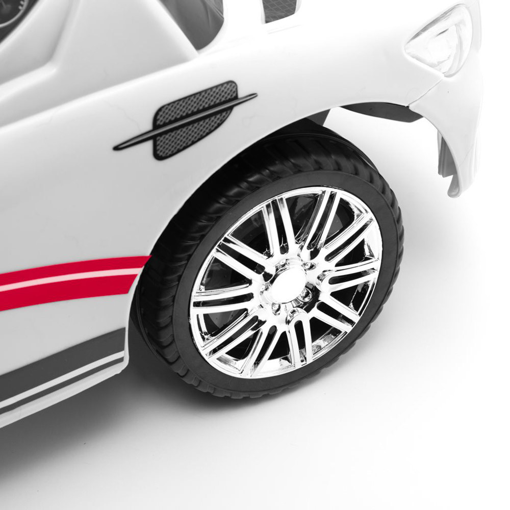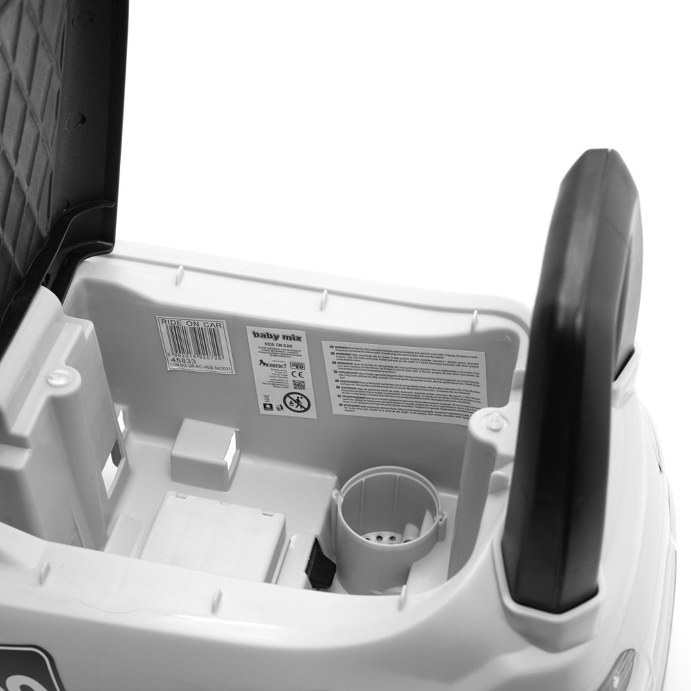 Bébitaxi Baby Mix RACER. A tökéletes kidolgozás és az olyan részletek, mint a kerekek, lámpák vagy a karosszériaforma, mindenki figyelmét felkeltik, és gyorsan kedvenc játékává válnak. Minõségi anyagokból készült, hangpanellel felszerelt. Remek és biztonságos játék. A játék alakja segít a gyermek motoros képességeinek fejlesztésében, amikor tanul járni. A hátsó speciális zárnak köszönhetõen versenyzõje védett a felborulás ellen. 3 db 1,5 V-os AA elemekre mûködik, nem a csomagolás része. Az elemeket a kormánykerékbe kell behelyezni, máshova nem.