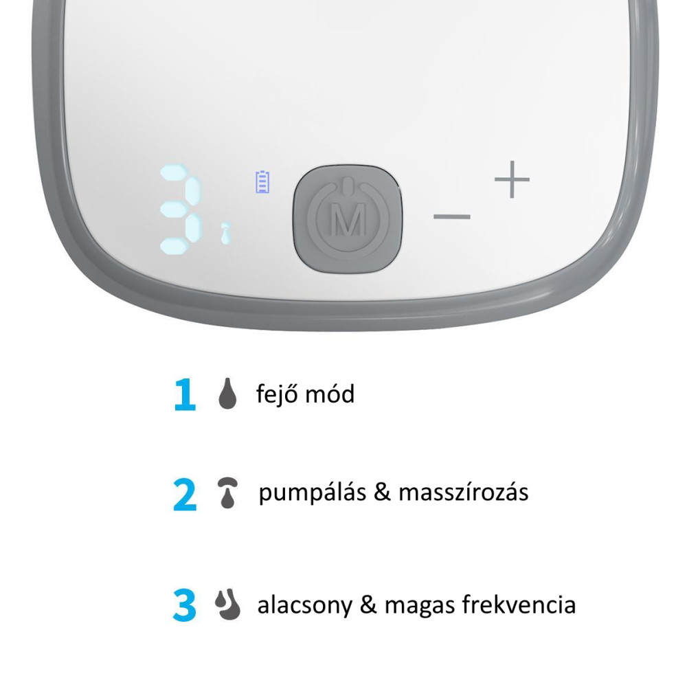 - Fejõ mód - Ebben a módban a szívóerõt 1-es és 7-es fokozat közt módosíthatod. Az egyes beállítások a fejés erejében különböznek: gyenge és erõs közt.