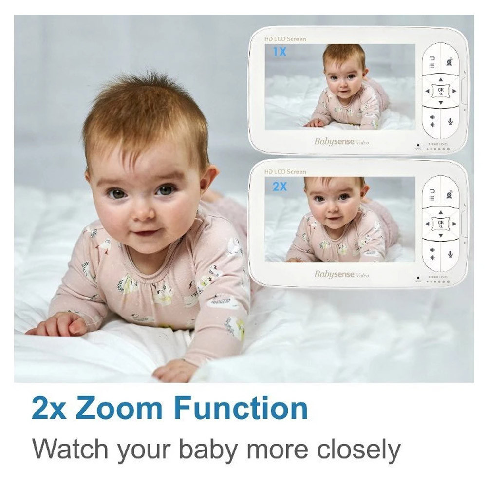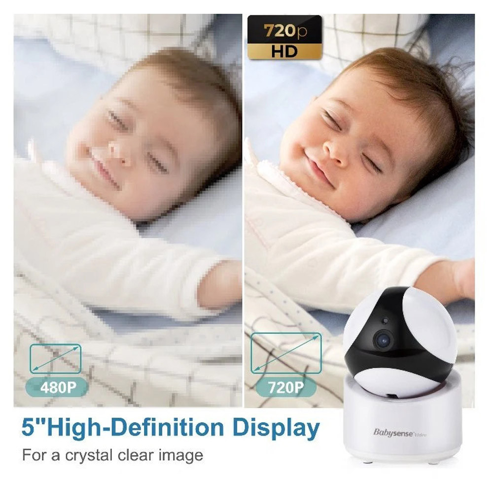 A V65 Baby Video Monitor nagy felbontású 5 colos LCD kijelzõvel és egy 720P HD kamerával van ellátva, távoli Pan, Tilt & Zoom funkcióval.