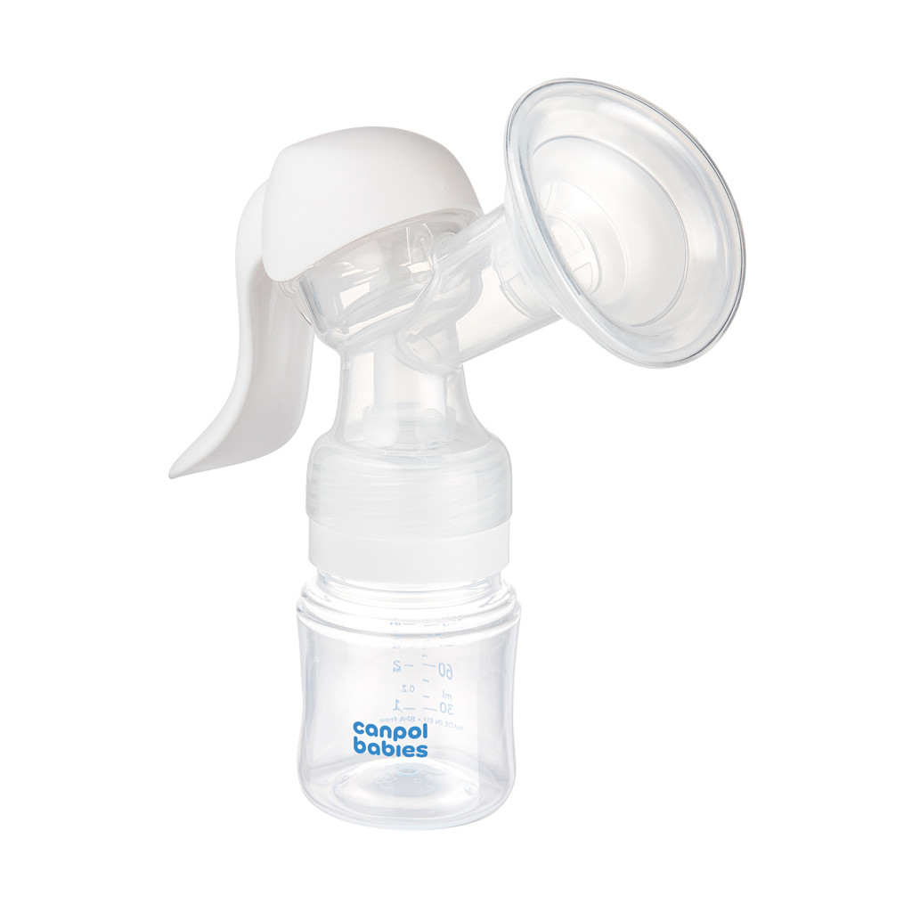 Kézi fejőgép Basic egyszerű kezeléssel és karbantartással. A kevés alkatrész megkönnyíti a tisztítását.A speciálisan formált kar a fejést nagyon kényelmessé teszi, ésnem igényel nagy erőfeszítést.A praktikus alap biztosítja a fejőgép stabil állását.A formázott tölcsér tökéletesen követi a mell formáját.A szilikon masszázsbetét finoman masszírozza a mellet és azáltala kifejtett szívó hatás segít megelőzni a gyulladásokat.Kompatibilis más tej tároló kiegészítőkkel – közvetlenül ahagyományos üvegekbe és a Canpol babies széles nyakú üvegeibe isfejhető a tej.A kézi anyatejfejő az adapternek köszönhetően alkalmas minden Canpol babies széles és keskeny nyakú cumisüveghez.A készlet tartalmazza: az anyatejfejő testéttölcsérrel és fedéllel, 120 ml-es széles nyakú üveget cumival3 hónapos kortól, adaptert az üvegekhez.Hatékony támogatás az alkalmi tejfejéshez.Ergonomikus fogantyú – lehetővé teszi a fejőgép kényelmes tartásáta tejfejés során.A formázott tölcsér biztosítja, hogy a tölcsér szorosan illeszkedjena mellhez.A szilikon tölcsér biztosítja a finom és hatékony tejfejést.Nagyon könnyű használat – egyszerű összeszerelés és tisztítás.Könnyű és praktikus – ideális otthonra és utazáshoz.Kompatibilis az összes Canpol babies gyermeküveggel.Biztonságos anyagból készült, BPA-mentes.Mikor használjuk a fejőgépet?Ha lehetséges, várjon a fejőgép használatával a szülés utáni 2–4 hétig,amíg beáll a szoptatás folyamata. Kivételek az említett szabályból:Ha túl sok tej van, a mellek feszültek és kemények. A felesleges tejlefejése a szoptatás előtt vagy alatt enyhíti a túltelt mellet ésmegkönnyíti a baba számára a mellre szokást. A mellbimbó a mellbenrejtőzik a szoptatások közötti hosszú szünet miatt. Befelé forduló,lapos vagy sérült mellbimbók esetén (a fejés segít formálni a befeléforduló vagy lapos mellbimbókat). Ha a szoptatások között hirtelentúltelítődik a mell és nem akarja felébreszteni a babát. Ha a bababeteg és nem tud szopni. Ha kevés a tejtermelés – a fejőgép használataserkenti a tejmirigyek működését. Ha visszatér a munkába és nem akarjamegszakítani a szoptatást – szimulálni kell a természetes szoptatásifolyamatot a fejőgép használatával. Milyen gyakran kell tejfejővelfejni? Ha az anya nem tud szoptatni, javasoljuk a tej lefejését naponta8-szor. Ez fenntartja a szoptatás folyamatát a megfelelő szinten. Kezdetbennehézségekbe ütközhet a nagyobb mennyiségű tej lefejésével, de néhány napután több tej lesz lefejve. A beállt szoptatás esetén az egyszerre lefejttej mennyisége 30–60 ml között mozog, ezért több próbálkozásra lehetszükség egy adag megszerzéséhez.Hogyan tisztítsuk és sterilizáljuk a fejőgépet? Az első ésminden további használat előtt szedje szét a fejőgépet az egyes alkatrészekre.Alaposan mossa meg a fejőgép összes alkatrészét és az üveget/tárolót melegvízben kímélő mosószerrel, alaposan öblítse le és sterilizálja az alábbiutasítások szerint. Az első használat előtt higiéniai okokból sterilizáljaa fejőgép összes alkatrészét és az üveget/tárolót 5 percig forrásban lévővízben. Minden további használat előtt higiéniai okokból sterilizálja afejőgép összes alkatrészét és az üveget/tárolót forrásban lévő vízzel valóleöntéssel vagy gőzsterilizátorban. Figyelem! A sterilizálás után várjon,amíg az összes alkatrész kihűl. Ne kezdje el az összeszerelést, ha azalkatrészek melegek vagy nedvesek, mert akkor a fejőgép nem fog megfelelőenműködni.Hogyan tisztítsuk és sterilizáljuk a cumit? Az első ésminden további használat előtt mossa meg a cumit meleg vízben kímélőmosószerrel, alaposan öblítse le és sterilizálja 5 percig forrásban lévővízben. Ne hagyja a cumit közvetlen napfényen vagy hőforrás közelében, ésne hagyja a fertőtlenítőszerekben ajánlottnál tovább – gyengülhet a cumi.Ne használjon semmilyen kémiai fertőtlenítőszert. Minden használat előttalaposan ellenőrizze a cumit, különösen, ha a gyermeknek már vannak fogai.Húzza meg a cumit minden irányban. Az első sérülés vagy anyaggyengülésjeleinél cserélje ki a cumit újra. Ne húzza túl szorosra a csavaros kupakot,mert akkor a cumi nem tud megfelelően szellőzni. Biztonsági és higiéniaiokokból javasoljuk, hogy a cumit max. 3 hónap után cserélje ki.HOGYAN FEJJÜNK HELYESEN TEJET A Basic FEJŐGÉPPEL? A fejéselőtt alaposan mossa meg a kezét és győződjön meg arról, hogy a fejőgépmeg van mosva és sterilizálva (ne feledje, hogy az összeszereléskor azalkatrészek nem lehetnek melegek vagy nedvesek) és össze van szerelve azelőző utasítások szerint. Ellenőrizze a fejőgép alkatrészeinek helyesfelhelyezését és tömítettségét.A hatékony tejfejés érdekében használja a fejőgépet a szoptatások között,nem közvetlenül a szoptatás után. A tejfejés előtt helyezzen a melléremeleg törölközőt, ami elősegíti a tej áramlását. Üljön le kényelmesen.Ne fejje a tejet stresszes vagy fáradt állapotban, ezek a helyzetekgátolják a tej áramlását. Helyezze a fejőgépet a mellére és győződjön megarról, hogy a szilikon masszázsbetét szorosan illeszkedik a mellhez. Anem tömítettség rontja a tejfejés folyamatát és a kar a fejés során nemtér vissza az eredeti helyzetébe. Ne távolítsa el a szilikon masszázsbetétet,ami serkenti a tej áramlását. Létre kell hozni egy vákuumot, ami a helyestejfejés garanciája. Ha azt szeretné, hogy a tej gyorsabban folyjon ki amellből, hajoljon előre egy kicsit, de az üveget tartsa függőleges helyzetben.Mindig tartsa az üveget függőleges helyzetben, hogy a tej szabadon folyhassonaz üveg aljára. Kezdetben fejje a tejet minden mellből csak 
