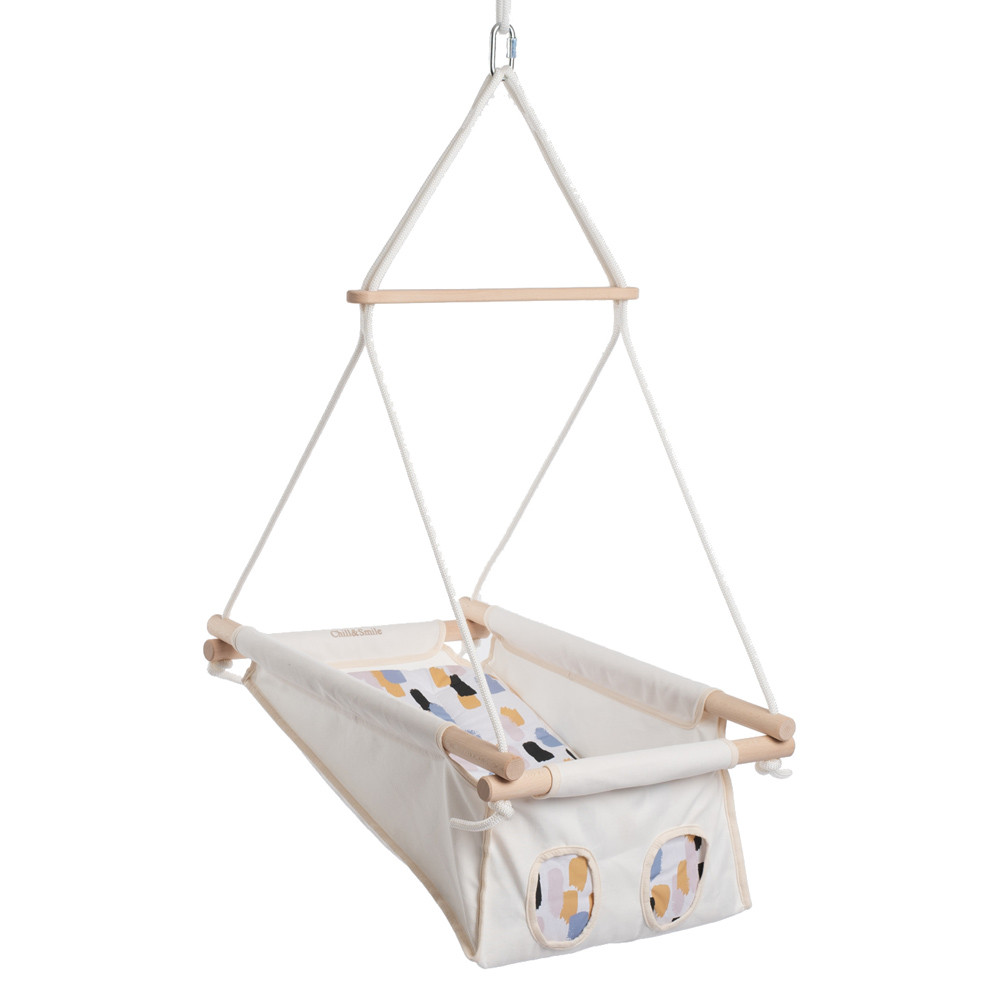 A babahinta puha, légáteresztõ pamutból készült, amely biztosítja a baba kényelmét és támogatja az egészséges testtartást. A hintázó mozgás nyugtató hatású, segíti az altatást és hozzájárul a baba egyensúlyérzékének fejlõdéséhez.