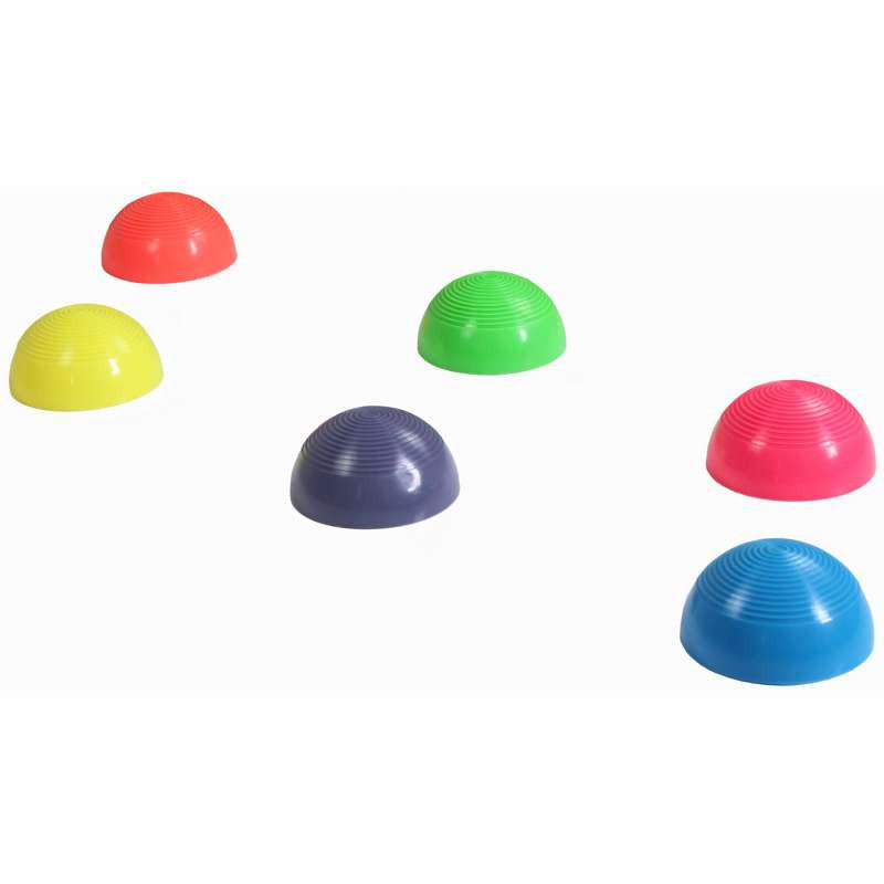 A szett 6 darab különböző színű félgömböt tartalmaz, melyek csúszásmentes kialakításuknak köszönhetően biztosítják a balesetmentes játékot, és stabil támaszt adnak a gyerekeknek.