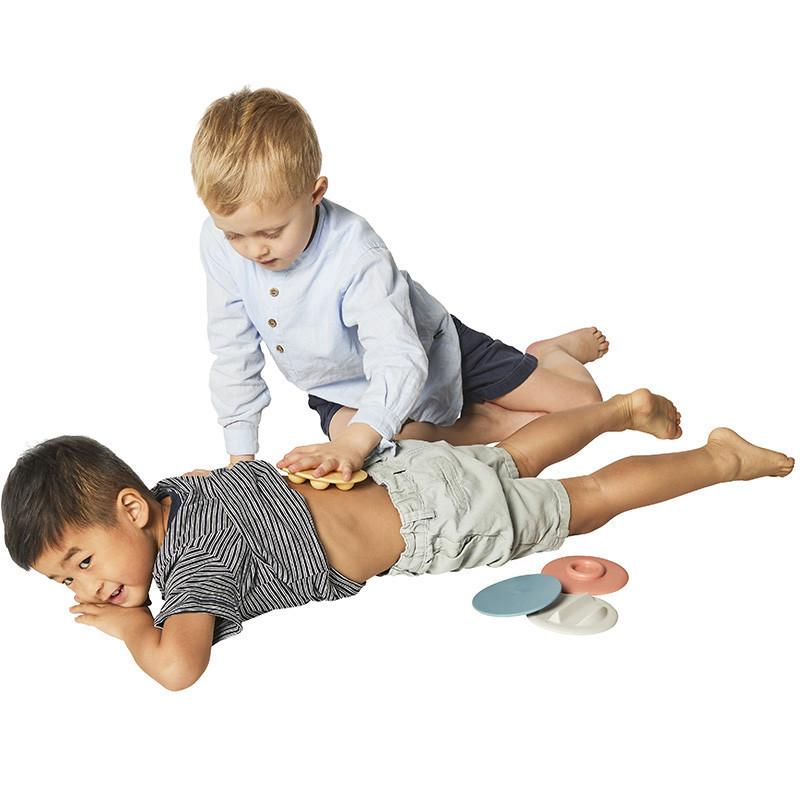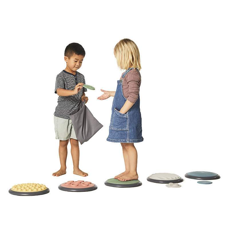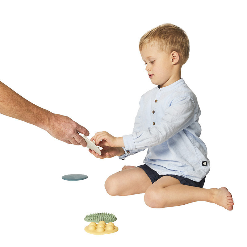 A gyerekeknek kézzel és lábbal kell különbséget tenni a különböző mintájú és keménységű korongok között.