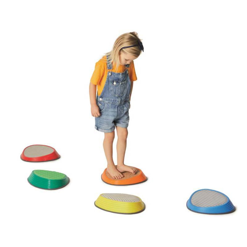 A különböző felületek más-más keménységégűek, tapadásúak és hőmérsékletükben sem egyformák, így stimulálják a gyerekek talpát.