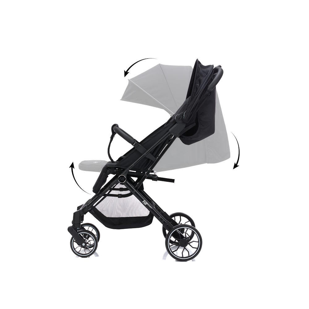 A forgó kerekek könnyedén legyõzik az összes felületet. Az állítható lábtartó és az állítható háttámla alkalmazkodik a gyermeked igényeihez. Ha gyermeked szundikálni szeretne út közben, a háttámlát fekvõ helyzetbe, a lábtartót pedig felsõ helyzetbe állíthatod, így kényelmes fekvõfelületet hozol létre.