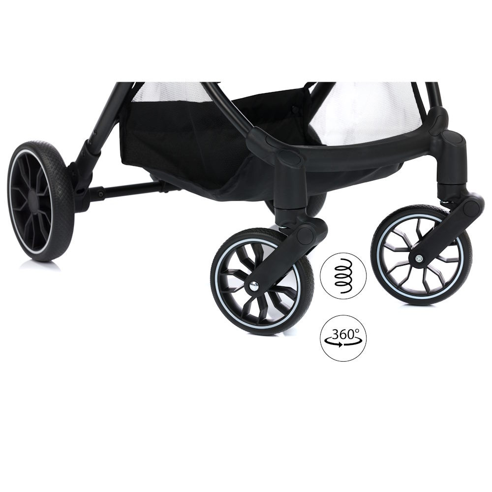 Egyesíti magában a modern babakocsi összes kényelmi funkcióját, mégis kompakt és könnyû. Kis összecsukható méretének köszönhetõen bármilyen autóban elfér, és alig foglal helyet otthon. Imádni fogod a nagy kosarat vásárlás közben. Különleges elõnye a kihúzható gurulós funkció, amely lehetõvé teszi, hogy összecsukva egyszerûen magad után húzd a babakocsit, ha a kicsi egyedül szeretne sétálni.