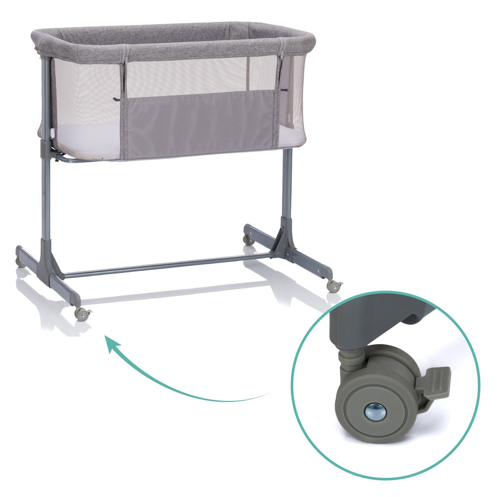 A légáteresztõ hálós anyag jó légáramlást biztosít, és mindig tiszta rálátást biztosít a babádra. A praktikus görgõk mozgathatóvá teszik a babaöblöt, és lehetõvé teszik, hogy könnyedén mozgathasd a szobában – akár egy kényelmes nappali alvásról, akár a maximális közelségrõl éjszaka.