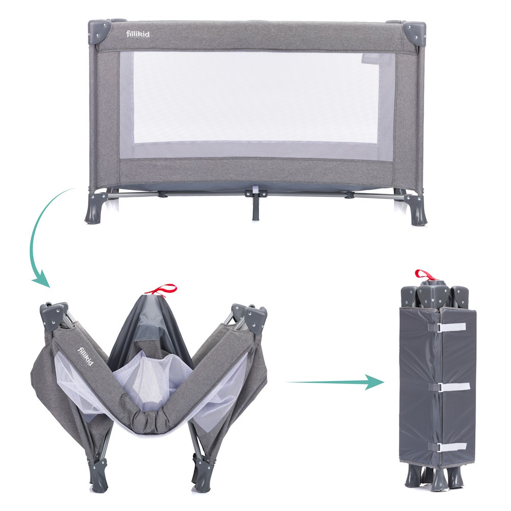 Fillikid utazóágy Milano 120x60cm szürke 4067-17