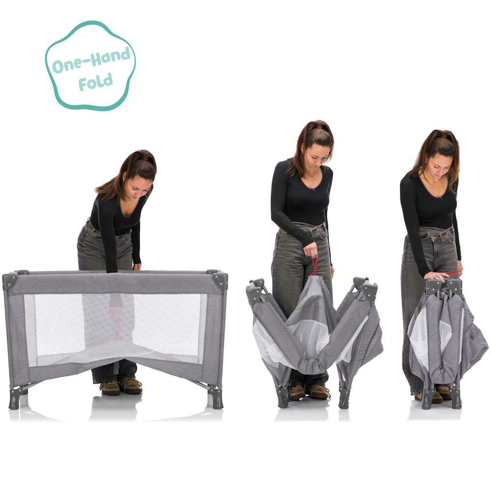 Kifejezetten innovatív a praktikus egykezes összecsukó mechanizmus, amely lehetõvé teszi, hogy az ágyat egyetlen mozdulattal, erõfeszítés nélkül nyisd ki vagy csukd össze – egyszerûen fel kell emelni a középsõ hurkot, és az összecsukási folyamat szinte magától végbemegy. Így a Milano mindennapi használat során gyorsan, kényelmesen és helytakarékosan elpakolható.