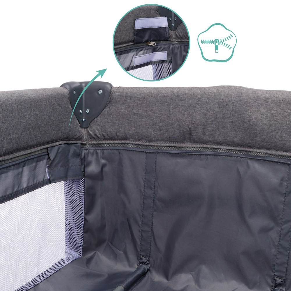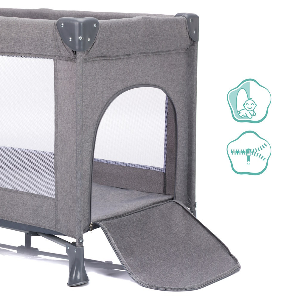 Különleges elõnye a cipzáras oldalsó bejárat: amint a gyermek nagyobb lesz, önállóan ki-be mászhat – ideális a kis felfedezõk számára. Ennek köszönhetõen a Milano nemcsak kényelmes alvóhely, hanem rugalmas játszóterület is.