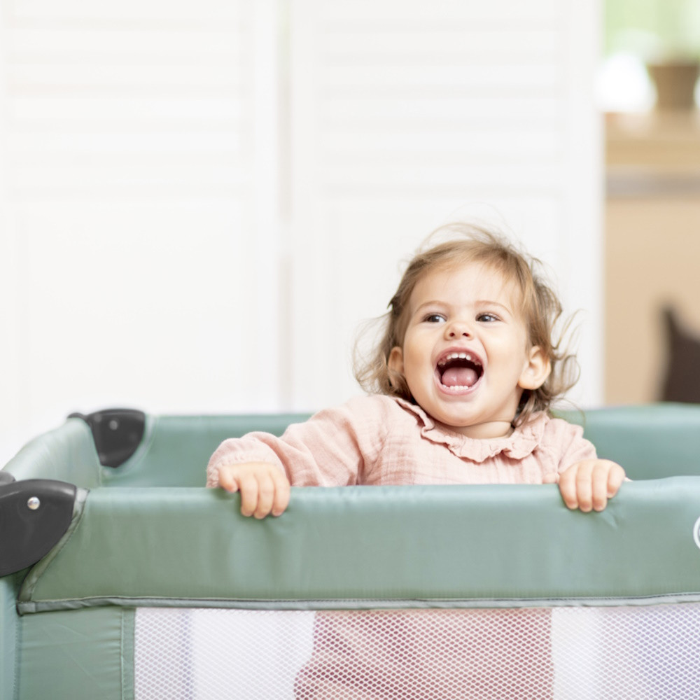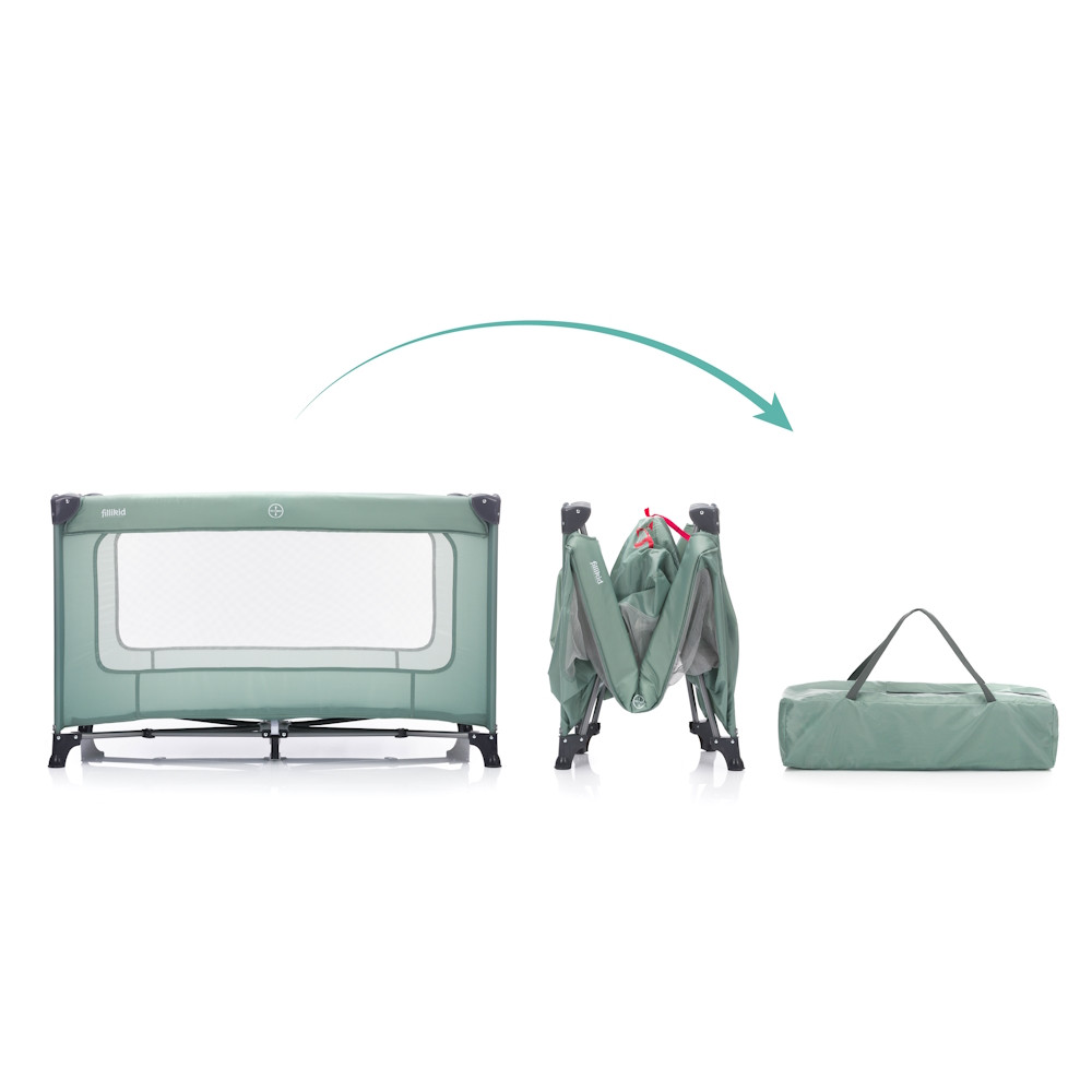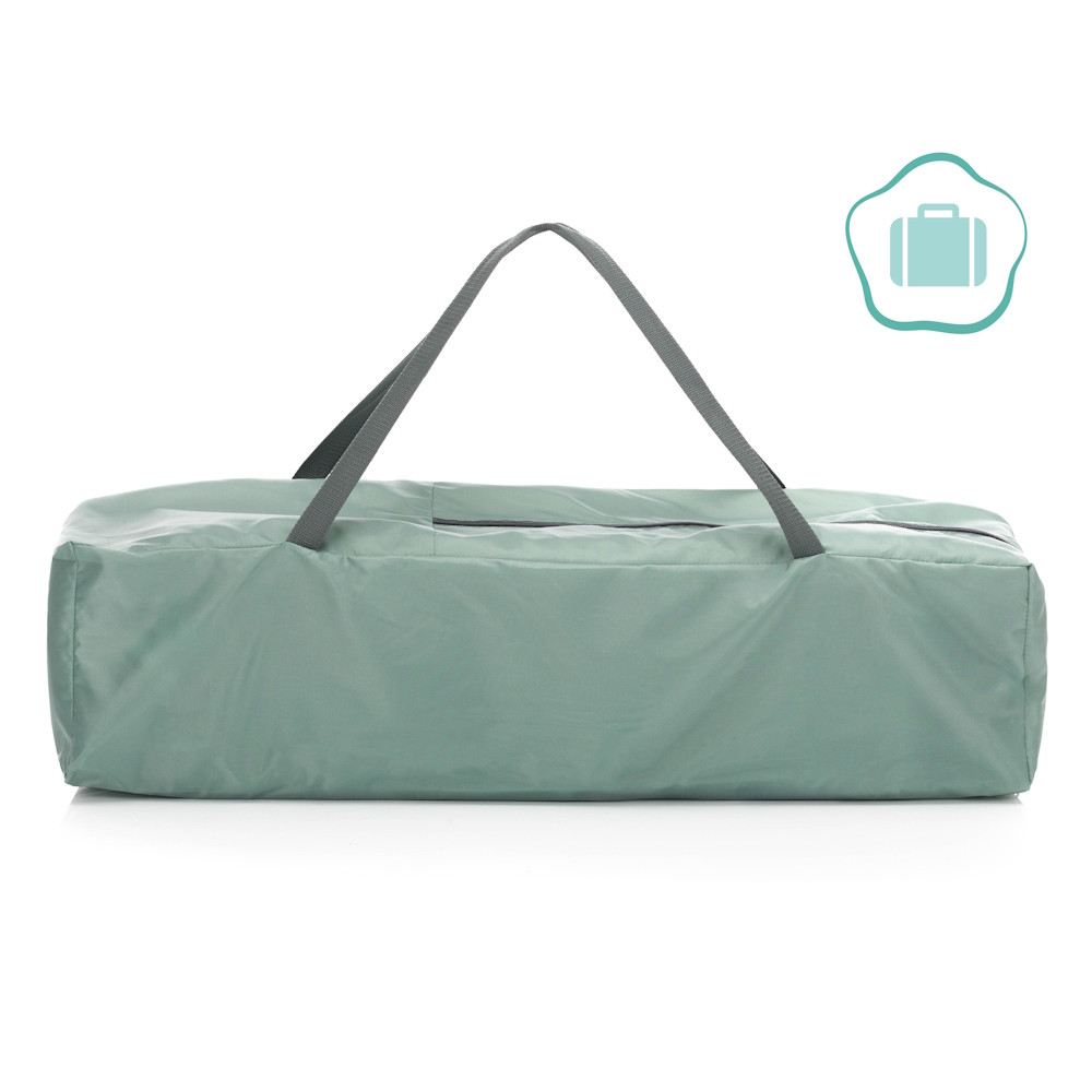 Könnyen és kompaktan összecsukható, a kiságyat a szállítótáskában magaddal viheted utazásaitokra.