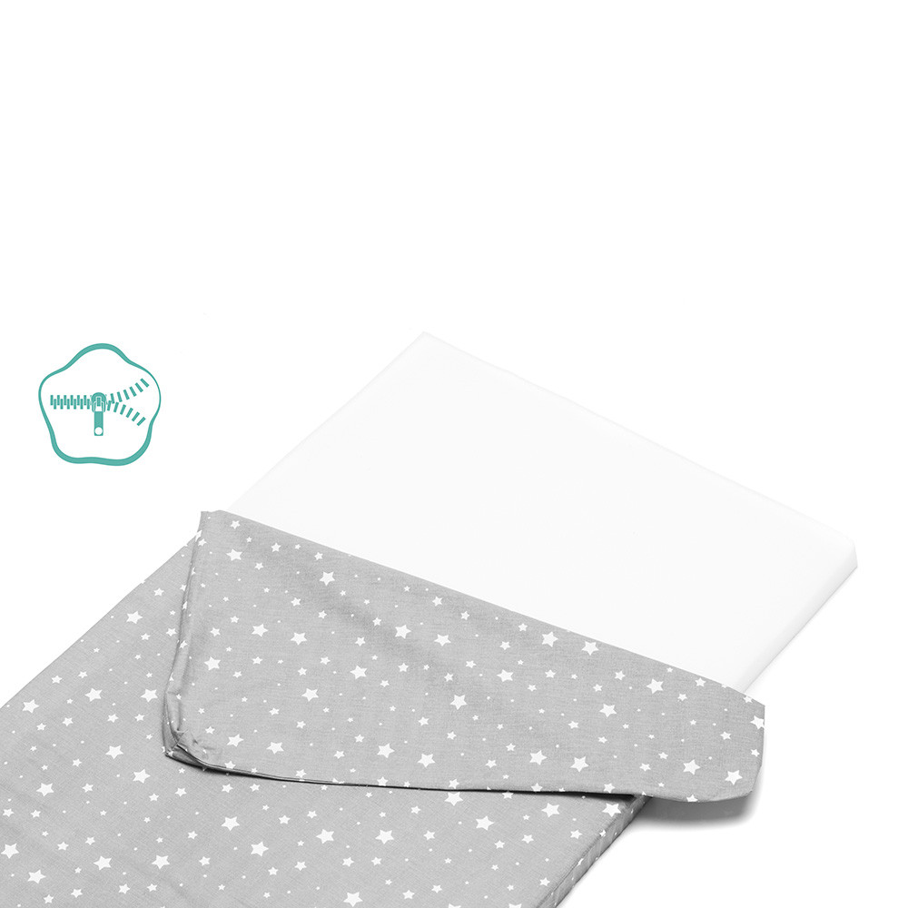 A Fillikid utazóágy matrac divatos mintájú és színû huzata 100% pamutból készült. Ezenkívül eltávolítható és 40°C-on mosható.