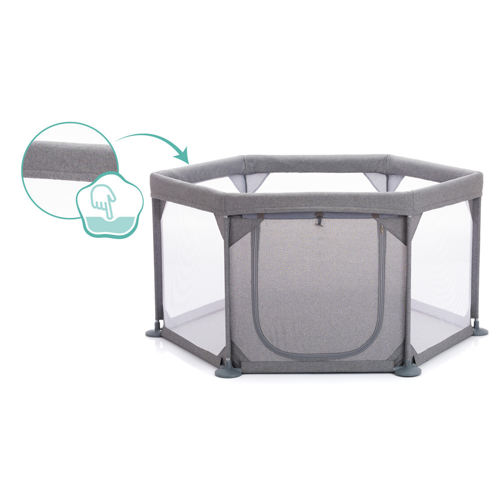 A házban, lakásban gyakran vannak olyan veszélyes dolgok, amelyek mászkáláskor, sétáláskor veszélyt jelenthetnek az aktív babákra. Ez a Fillikid hatszögletû járóka nagyobb biztonságot nyújt kis babádnak. A puha matrac hangulatos játékfelületet és extra meleget biztosít a hideg járólap vagy parketta ellen. A járóka pillanatok alatt felállítható. A szállítótáskával könnyedén összepakolhatod és magaddal viheted mindenhova, hogy babád mindig biztonságban tudjon benne játszani. A hálós oldalfalaknak köszönhetõen szemmel tarthatod babádat, és a levegõ keringhet a járókában. Oldalán cipzár található, így gyermeked felügyelet mellett önállóan tud ki- és bemászni, a bejáratnál feltekerheted és rögzítheted az anyagot.