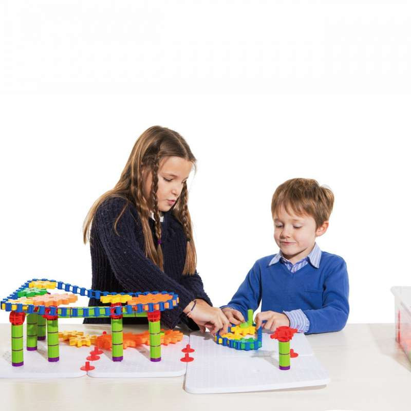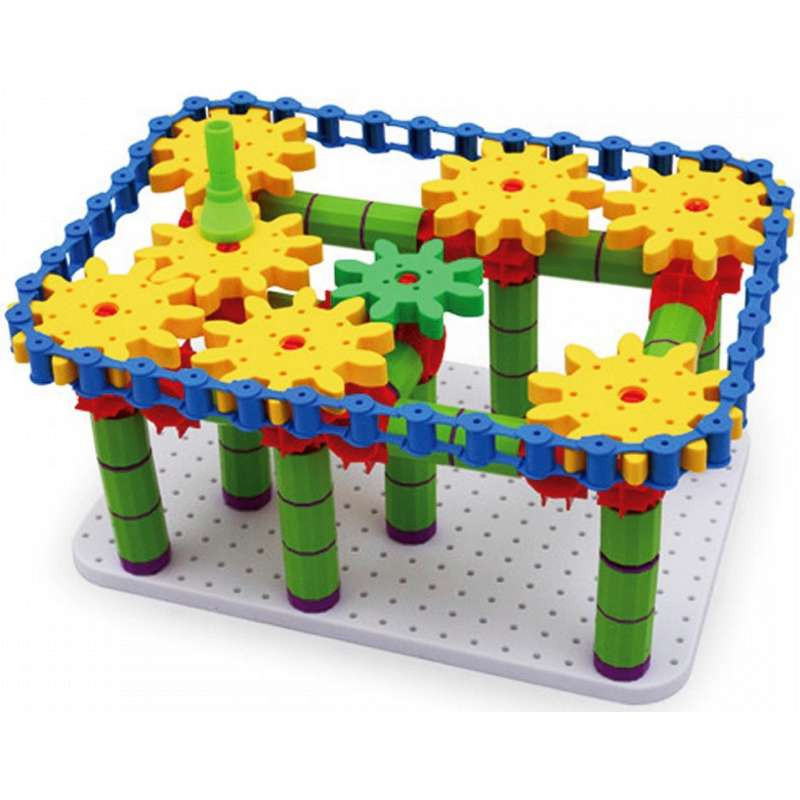 Tökéletes eszköz eszköz a gyermekek kreativitásának fejlesztésére! A fogaskerekek segítségével mozgatható, forgatható szerkezeteket építhetnek, így bevezetve őket a mechanika világába.A szett 340 darab építőelemet tartalmaz! 5 és 12 éves kor között ajánlott!