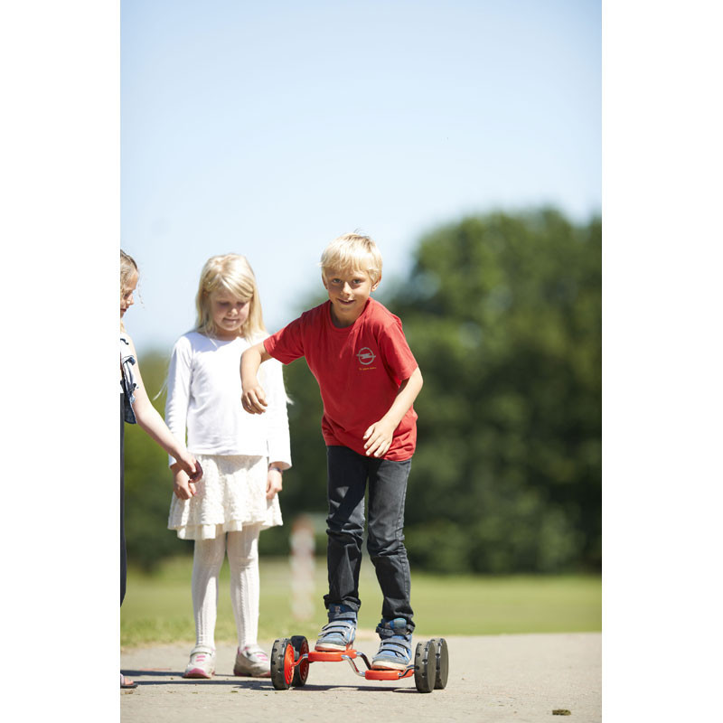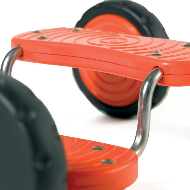 A lábak taposó mozgásával halad. Fogantyú, kapaszkodó külön rendelhető hozzá.