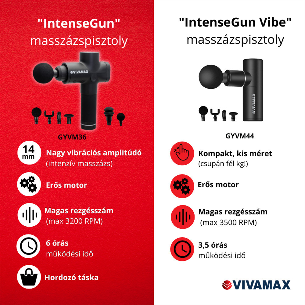 IntenseGun VIBE, a praktikus, kis méretű és könnyű masszázspisztoly a személyre szabott, intenzív masszázsért!