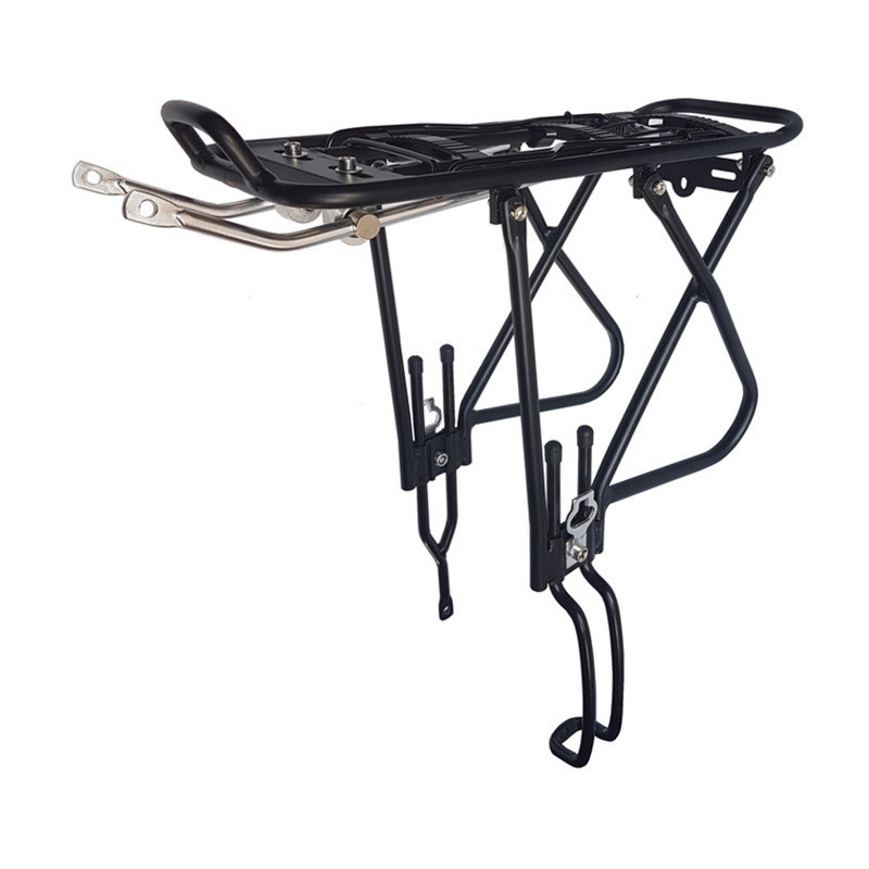 Kerékpár csomagtartó,Állítható, mérete: 26"-28"Anyaga: alumínium cső.Tárcsafékes kerékpárokhoz is használható!Színe: fekete.