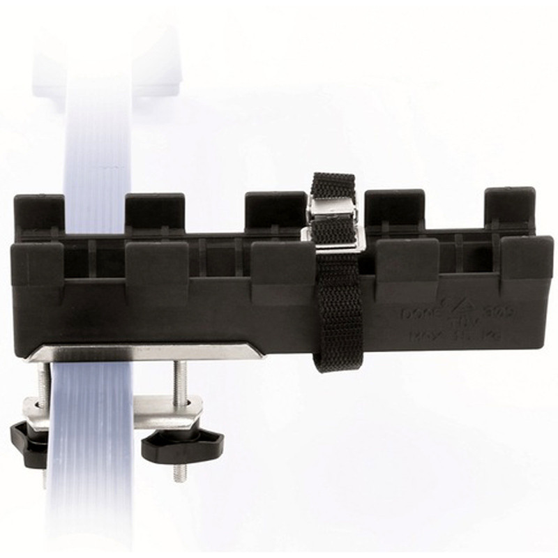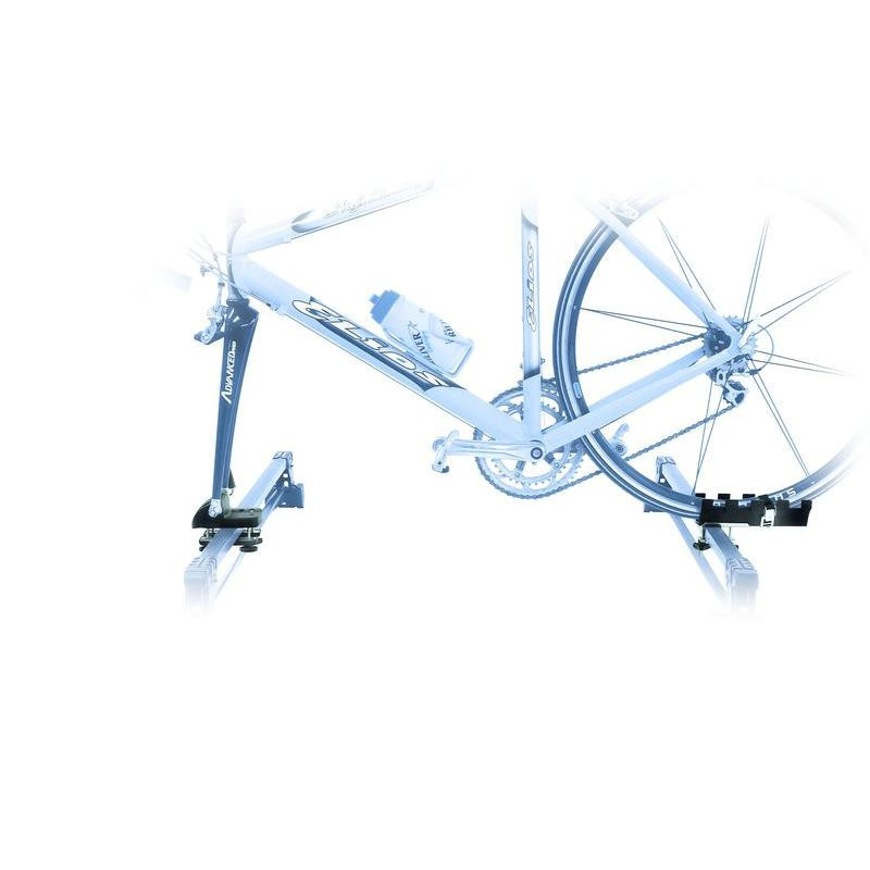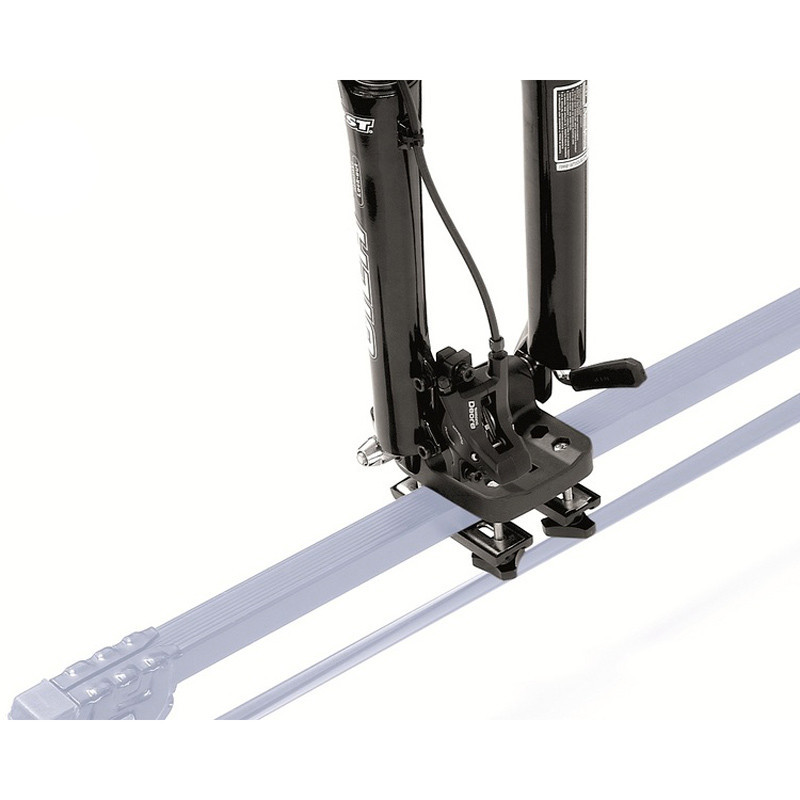 Keresztrúdra rögzíthető, 2 részes, kerékpárszállító.Technikai adatok: - Az első rész gyorszárral rögzíti a villát, a hátsó rész műanyag kerékvályú, hevederes rögzítéssel - Tárcsafékhez is - Szerszám nélkül felszerelhető - Terhelhetősége max. 15 kg