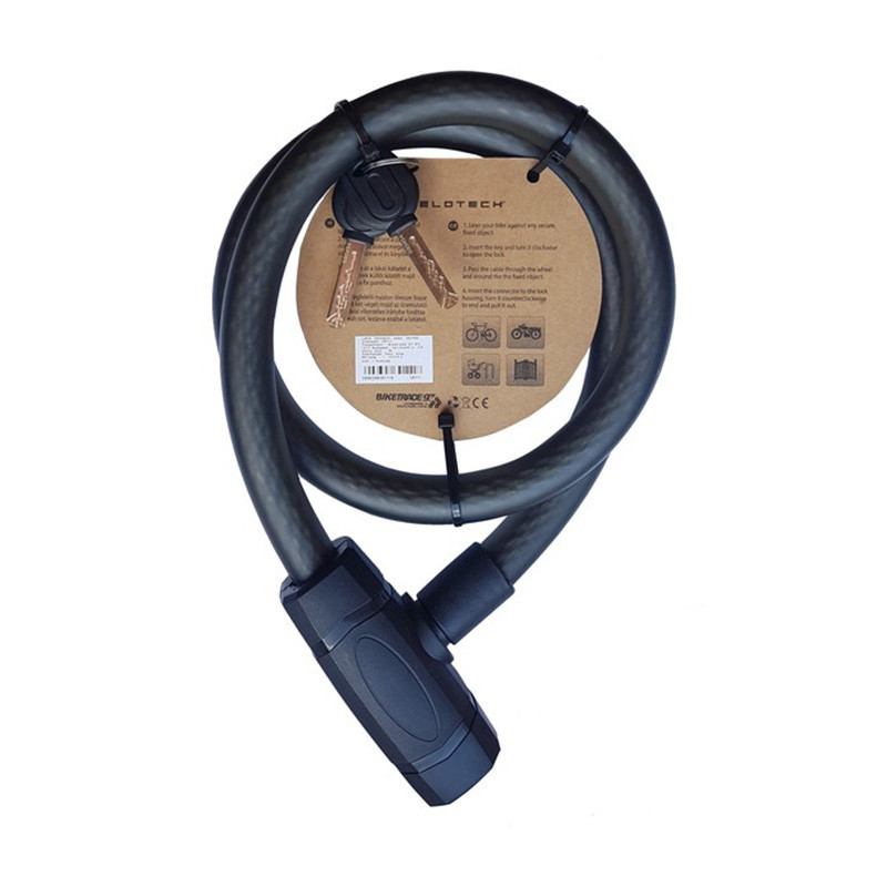 Sodort acél kerékpárzár műanyag bevonattal.Technikai adatok: - Sodrott acél, műanyag bevonattal - Méret: 20 x 1000 mm - Zárás: biztonsági kulcsos - Szín: füstszínű