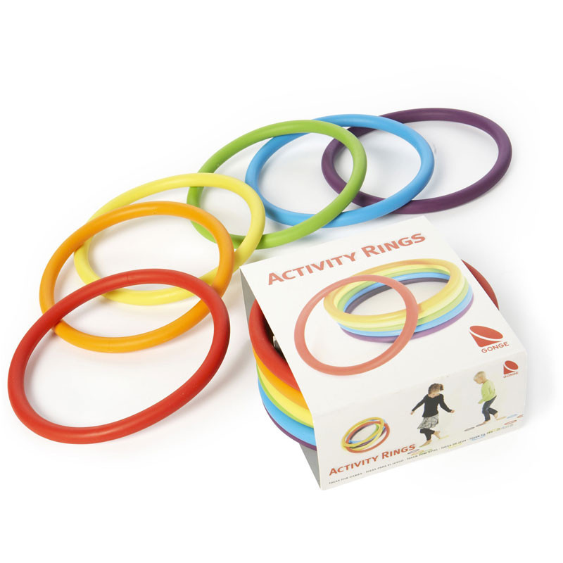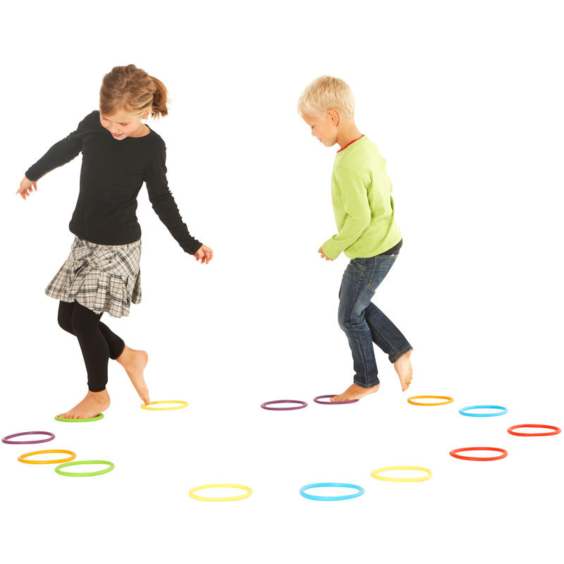 Új, élénk színű karikák minden korosztály számára. A karikáknak rengeteg felhasználási módja van: egyensúlyozhatunk velük a fejünkön, pályákat alakíthatunk ki, melyeken lábujjhegyen végigmehetünk vagy körbetáncolhatjuk, pörgethetjük lábunkon és kezünkön, dobálhatjuk egymásnak, vagy akár lábainkra húzva ugrálhatunk velük.