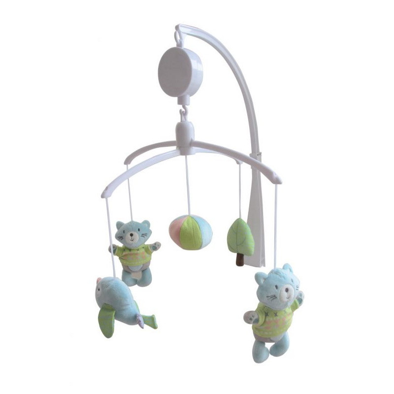 • Felhúzás után lágy zenét játszik és megpörgeti a színes puha játékokat;