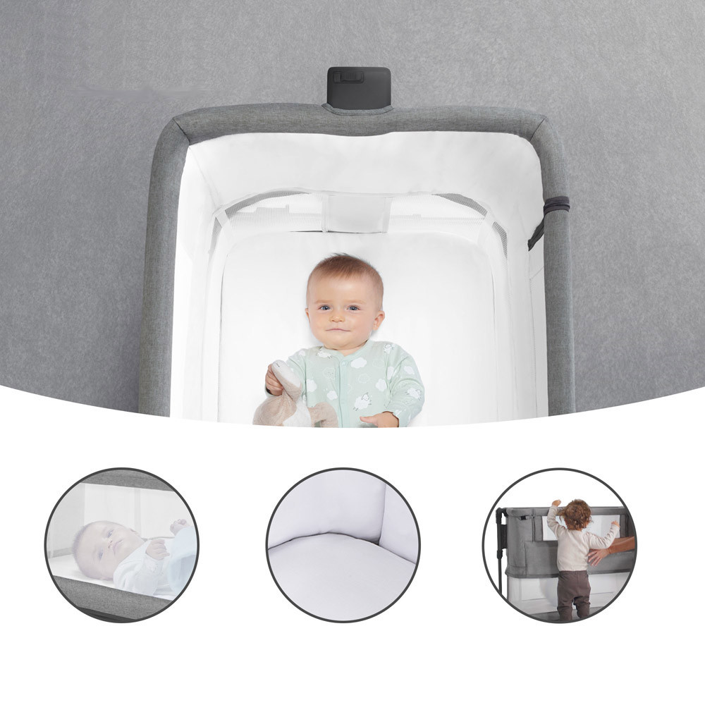 Az oldalfal könnyen összecsukható. Így alakul át a babaágy szülõi ágy mellé tehetõ babaöböllé.