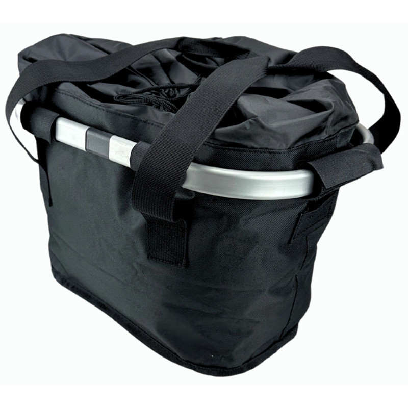 Kerékpár első kosár, szövet.Alumínium kerettel, gyorskioldóval.Tetején összehúzható.Fogantyúval.Méret: 33x23x25 cm.Szín: fekete.