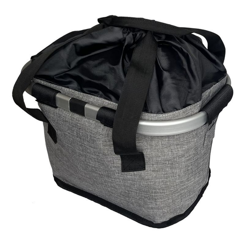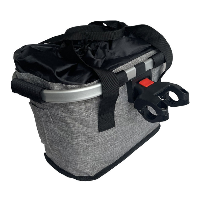 Kerékpár első kosár, szövet.Alumínium kerettel, gyorskioldóval.Fogantyúval.Méret: 33 x 23 x 25 cmSzín: sötét szürke
