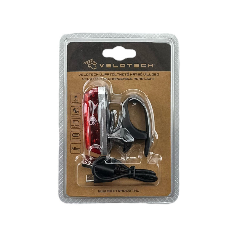 VELOTECH újratölthető hátsó villogó.