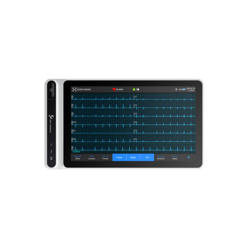 Főbb jellemzők: - 7 colos, 1024×600 felbontású érintőképernyővel ellátott 12 csatornás EKG készülék. Méretei: 197mm × 112,4mm × 26,1mm, súlya csupán 0,8 kg – gyors és egyszerű telepítésre tervezve.