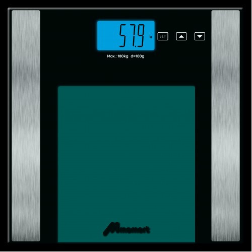 •kapacitás: 180kg•osztás: 100g•precíziós mérési rendszer•biztonsági üvegfelület•7 funkció: testsúly, testzsír, testvíz, izomtömeg, csonttömeg, BMI (testtömegindex), napi kalóriaszükséglet (Kcal figyelő)•memória 10 személy részére•nagy LCD kijelző kék háttérvilágítással•automatikus kikapcsolás•túlterhelés kijelzése, alacsony energiaszint kijelzése•mértékegységek: kg, lb, stEnergiaforrás: 2×CR2032 elemKiszerelés: