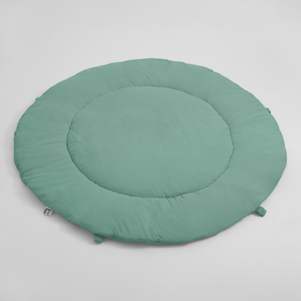 Muszlin gyermek játszószönyeg egy kiváló termék, amely élete elsö napjaitól fogva alkalmas a baba számára. Az elsö idöszakban egy csodálatos pléd lesz belöle, amit használhat az ágyon, vagy a kiságyban. Késöbb, amikor a baba ülni kezd, a New Baby muszlinfonattal kombinálva kellemes játékhely lesz. A fonat egyszerüen a játszószönyegre köthetö a madzagok segítségével.