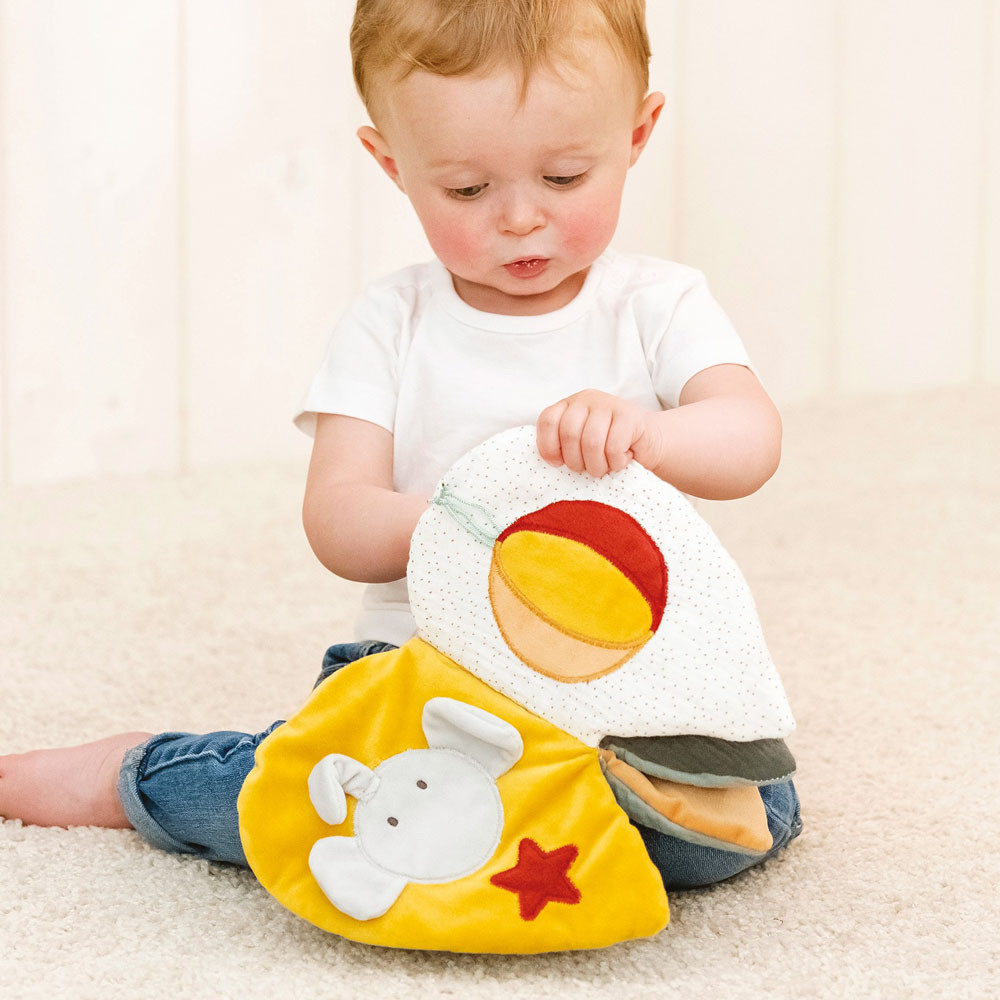 Az imádnivaló készségfejlesztõ puha plüss könyv tökéletes játszótárs babádnak minden kalandja során. Színes képei fejleszti a baba képzelõerejét. Puha kellemes tapintású. A puha plüss könyv számos megragadható és érinthetõ részletet kínál, arra ösztönzik a gyermeket, hogy nyújtsa ki a kezét, és fogja meg õket. Ezenkívül a könyvben elhelyezett finoman susogó és nyikorgó elemek fejlesztik a baba hallását, míg az anyagok különbözõ textúrái támogatják az észlelést. A lapozáskor felfedezhetõ tükör és tevékenységek extra szórakozást nyújtanak a babának.