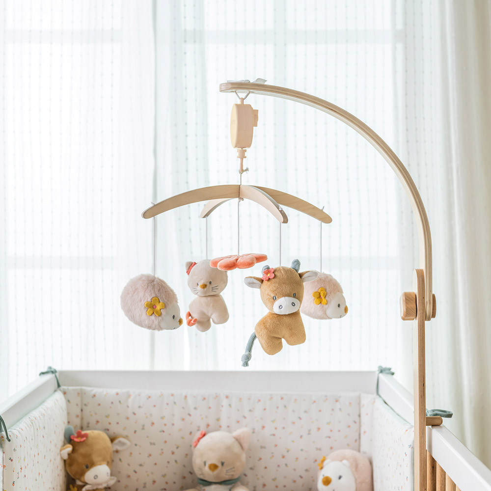 Az imádnivaló zenélõ-forgó, aranyos bújós figuráival – amelyek finoman forognak és mozognak az altatódal ritmusára – nyugodt alvást és édes álmokat biztosít. A zenélõ-forgó egyszerûen és biztonságosan rögzíthetõ a kiságyhoz, bölcsõhöz vagy a járókához, a figurák pedig könnyen eltávolíthatók és mosógépben moshatók.