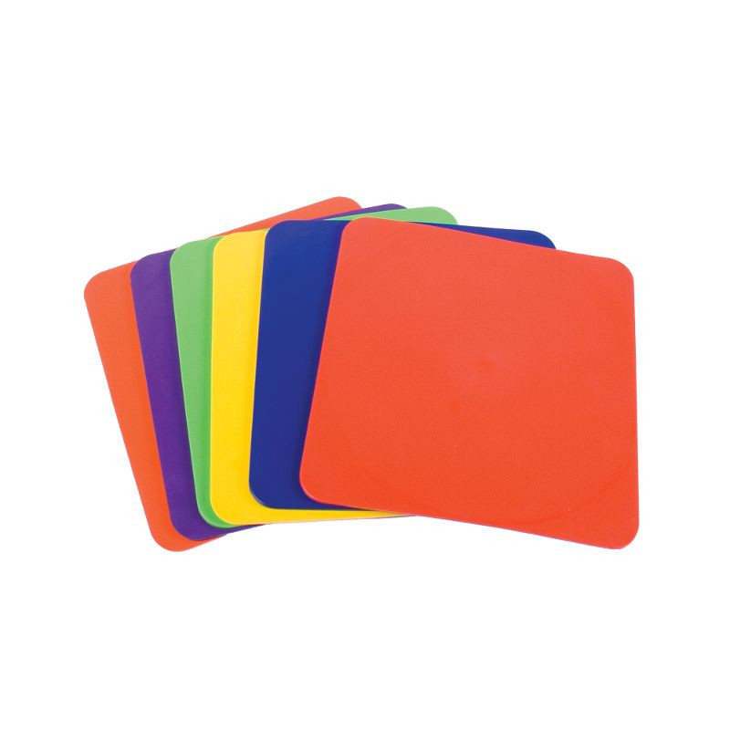 A szett 6 db négyzet jelölőt tartalmaz, különböző színekben.