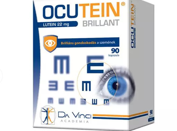 Besorolás típusa: étrend-kiegészítő A normál látás minőségének megőrzéséhez ajánlott a különböző vitaminok és ásványi anyagok folyamatos utánpótlása, melyet a megfelelő szemvitaminok szedésével érhetünk el legkönnyebben. Az Ocutein Brillant komplex szemvitamin 22 mg lutein és 3 mg zeaxantin tartalommal gondoskodik szeme egészségéről! Az OCUTEIN BRILLANT készítmény HARMAS KOMPLEX összetevői:KAROTINOID KOMPLEX: lutein, zeaxantin, A-vitamin -A Karotinoidokhoz tartozó lutein es zeaxantin főkent a makula luteaban találhatok magas koncentrációban, a makula alkotóelemei. Az A-vitamin a normál látás megőrzésében vesz részt. MIKROELEM KOMPLEX: cink, réz és szelén - Az UV sugárzás es más ionizáló sugárzás a szabad gyökök túlzott képződését okozza, amelyek károsíthatják a szemlencse membránjait es fehérjeit. Ezért a termeket kiegészítettük cinkkel, rézzel és szelénnel, mely hatóanyagok hozzájárulnak a sejtek oxidatív stressz elleni védelméhez. FFK KOMPLEX: folsav, foszfatidil-kolin - A folsavnak a normál homocisztein anyagcsereben van szerepe. A foszfatidilkolin a lecitinnek – a sejt membránok építőanyagának - összetevője. Ajánlott adagolás: Naponta 1 kapszula. Ne lepje túl az ajánlott napi mennyiséget!