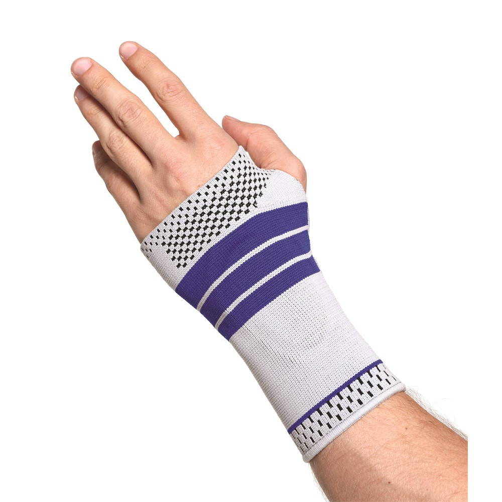 Új generációs szorító a stabil, mégis kényelmes tartásért! Szilikon betéttel, ami az ízületek és a sérülékeny szövetek fokozottabb védelmét szolgálja. Termékjellemzők: Több, mint egyszerű elasztikus csuklószorító, mert extra szilikon párnával rendelkezik, hogy speciális védelmet nyújtson a csukló és a kézfej számára. A kézfej anatómiájához igazodó, kombinált szövési technikával készült, rugalmas és tartós anyag maximális védelem mellett szabad mozgást enged a kéznek. A kompressziós hatás segíti a sérülések utáni regenerációt, megakadályozza a túlerőltetésből adódó húzódásokat, sérüléseket. Emellett kifejezetten ajánlott sportoláshoz is. Külön balos és jobbos kivitelben a még kényelmesebb viselet és pontosabb illeszkedik érdekében Két méretben elérhető: M és L Anyaga: 70% nylon, 20% latex szál, 10% spandex, szilikon betét Tisztítása: kézzel mosható langyos, mosószeres vízben Mérettáblázat: Méret Kézfej körméret (ökölbe szorított kéz esetén az ujjtövek alatt mérve) M 21-23 cm L 24-26 cm