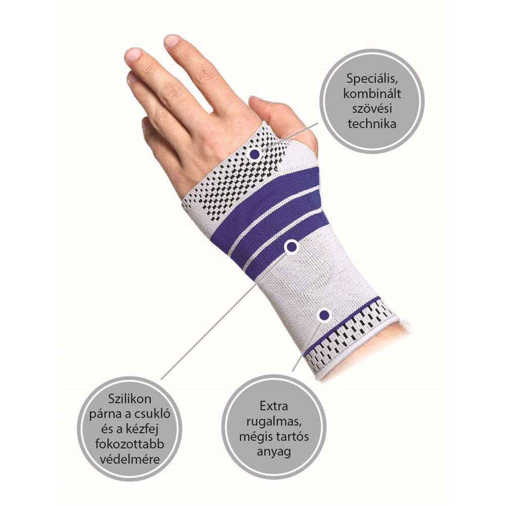 OrtoCare csukló- és kézfejszorító szilikon betéttel jobb L