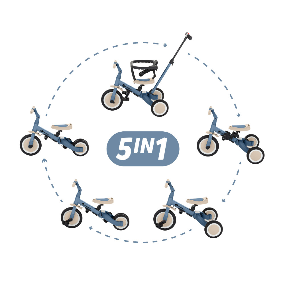 HU DescriptionAmatőrtől a profiig / Triciklitől a kerékpárigMultifunkcionális tricikli 1,5 és 5 év közötti vagy legfeljebb 25 kilogrammos gyermekek számára. Nem csak közlekedési eszköz a mozgáshoz és az egyensúly elsajátításához, hanem a növekvő gyermek társa is a fejlődés számos szakaszában. A kerékpár átgondolt változtatása alkalmazkodik a kisgyermek igényeihez, ahogy a motoros képességei fejlődnek. Kezdetben háromkerekű kerékpár, szülői segítséggel, míg a végleges változat egy hagyományos, pedálos kerékpár, további támogató funkciók nélkül. Az ilyen változtatásoknak köszönhetően segíthet gyermekének megtanulni két keréken közlekedni.A kerékpár egyedülálló tulajdonsága a multifunkcionalitás, amelynek köszönhetően öt különböző módban használhatja a gyermek életkorától és képességeitől függően:1. Tricikli tolókarral mód - 1,5-2 éves korosztály számára.2. Háromkerekű futóbicikli mód - 1,5-2 éves korosztály számára.3. Pedálos tricikli mód – 2-3 éves korosztály számára.4. Egyensúlyozó kerékpár mód - 3-4 éves korosztály számára.5. Pedálos kerékpár mód – 4-5 éves korosztály számára.A csúszásmentes gumi fogantyúval ellátott kormány állítható, a pedálok levehetők, a nyereg magassága állítható, az állítható biztonsági övek pedig maximális biztonságot nyújtanak. A tartós gumikerekeknek köszönhetően a kerékpár két- és háromkerekű változatban is ideális, és különböző felületeken garantálja a stabilitást.Az egyik módról a másikra való egyszerű átalakítási rendszer nem igényel szerszámokat, és lehetővé teszi a gyors váltást a gyermek életkorának és képességeinek megfelelően.Kiterjedt funkcionalitása ellenére könnyű és praktikus, mindössze 5,6 kg-os súlyú és kompakt méretű:Háromkerekű változatban 67 cm hosszú, 46 cm széles, és a nyereg magassága 31 és 37 cm között állítható.Tulajdonságok:•5 mód a gyermek korától és képességeitől függően•állítható kormány gumi fogantyúval•levehető pedálok•állítható nyereg biztonsági övvel•tartós gumikerekek•könnyű átváltási rendszer egy másik módba•1,5 és 5 év közötti vagy legfeljebb 25 kg-os gyermekek számára tervezték.•Hossz: 67 cm•szélesség (háromkerekű változat): 46 cm•magasság (nyereg): 31-37 cm•A termék súlya: 5,6 kgMagyarországi képviselő: ags92 Kft., HU-9028 Győr, Szent Imre út 61/Ainfo@petiteetmars.com