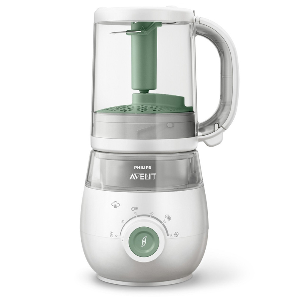 Párolás,turmixolás,fagyasztás melegítés Egészséges párolás Párolás és turmixolás egyetlen kehelyben Könnyed, tápláló bébiételek Tisztában vagyunk azzal, hogy a tápláló étel elengedhetetlen gyermeke egészségének fejlõdése érdekében. A Philips Avent egészséges bébiétel-készítõ hozzájárul az ízletes ételek otthoni elkészítéséhez, gyermeke ízlésére szabható, és mindez egyszerû módon. Étkezés könnyedén • Csipogó hangjelzéssel kísért figyelmeztetés • Mosogatógépbe helyezhetõ kehely és penge, valamint könnyen hozzáférhetõ víztartály • Akár négy fogást is elkészíthet egyidõben, egy 1000 ml-es kehely segítségével • A párolástól a turmixolásig, minden egyetlen praktikus kehelyben • Párolja, turmixolja, fagyassza le, majd melegítse fel az otthon elkészített ételeit • Egyedülálló párolási eljárás az egészséges fõzésmód érdekében. Bébiétel-készítés a szilárd ételekkel való táplálási szakaszokhoz • A püré állagú ételektõl a sûrûbb, darabos ételekig különbözõ szilárdság Professzionális útmutatás és válogatott receptek • Dr. Emma Williams ízletes receptjei a különféle táplálási szakaszokra • Fedezzen fel teljes értékû recepteket, szórakoztató videókat, tippeket és trükköket Mûszaki adatok Feszültség: 220-240 V, 50-60 Hz Energiafogyasztás: 400 W Biztonsági besorolás: Class 1