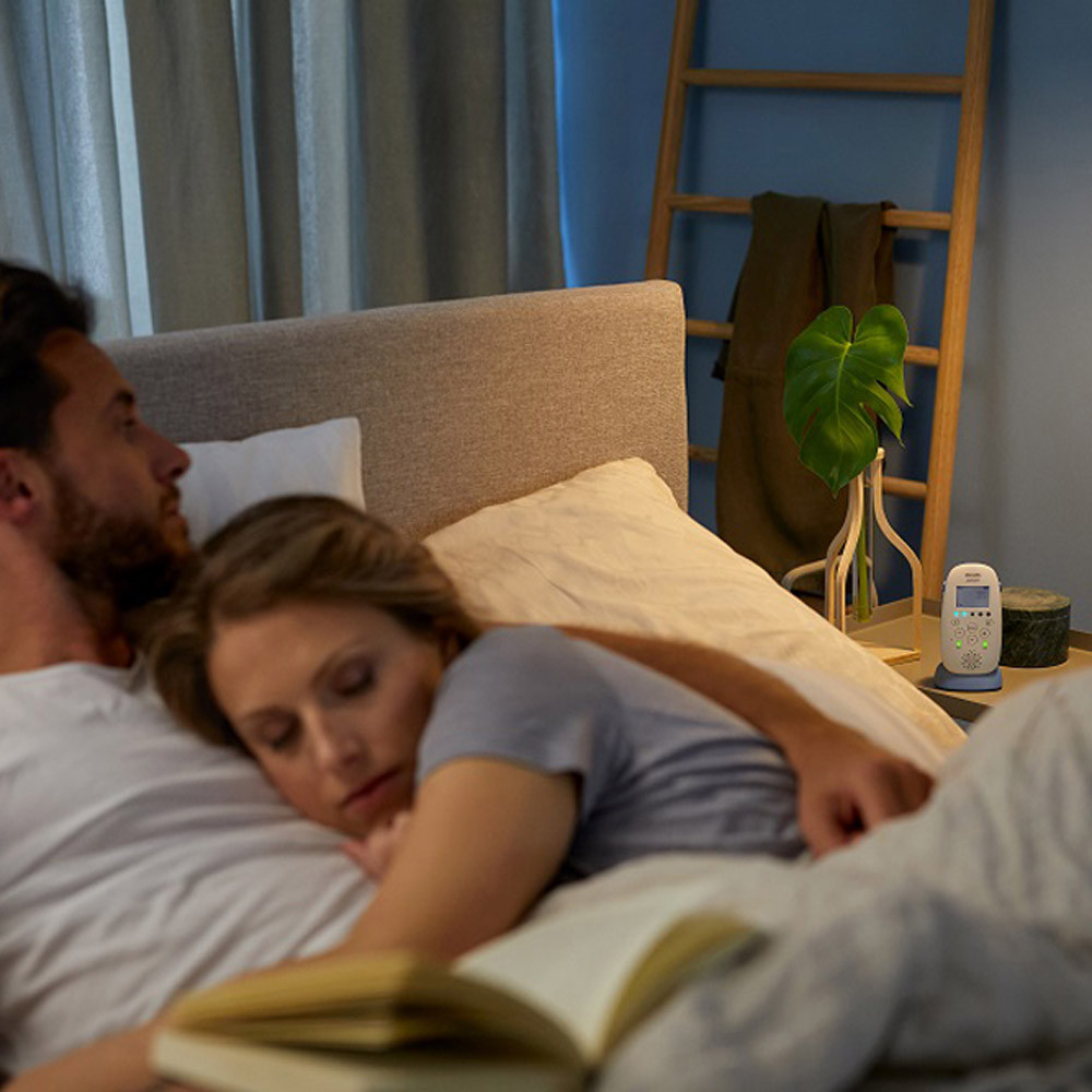 A legmegbízhatóbb kapcsolat gyermekével 100%-os személyes és interferenciamentes kapcsolat Az SCD735 DECT babaõrzõ a kristálytiszta hangzásának, valamint az altatást és megnyugtatást szolgáló többféle funkciójának köszönhetõen mindig teljes kényelmet és nyugalmat biztosít. Gyermekének nagyon fog tetszeni a csillagos éj fénykivetítõ! A rugalmasság szabadsága • Dokkolóegység a kényelmes töltéshez • Kiemelkedõen hosszú mûködési idõ az éjszakai felügyelethez • Éjszakai üzemmód tompított fényerejû kijelzõvel és hanggal • Akár 330 méteres hatótávolság* Megbízható kapcsolat és folyamatos nyugalom • DECT technológia, interferenciamentesség és 100%-os adatvédelem • Kristálytiszta hangzás a DECT-technológiának köszönhetõen • Gyõzõdjön meg a kapcsolatról a LED-jelzésekkel • Energiatakarékos Smart ECO üzemmód minimális átviteli teljesítménnyel • Figyelje a baba szobájának hõmérsékletét, és állítson be riasztást Megnyugtatás és altatás • Megnyugtató éjszakai fény és altatódalok a baba megnyugtatásához • Beszéljen gyermekéhez a távolból! Jellemzõk • Bébiegység tartalékelem funkcióval • Megnyugtató éjszakai fény • Beltéri hatótávolság akár:: 50 m • Kültéri hatótávolság akár:: 330 m • Beszéd funkció • Temperature sensor • Hálózatról és akkumulátorról is üzemeltethetõ szülõi egység • Megnyugtató altatódalok • Töltõállomás DECT technológia • Energiatakarékos Smart ECO üzemmód • Hangra aktiválódó fények: 5 LED-izzó • Csillagos éj fénykivetítõ • Gyõzõdjön meg a kapcsolatról!: Igen, LED jelzésekkel • Éjszakai üzemmód: Igen, tompított fényerejû kijelzõvel és hanggal • Halk rezgõ üzemmód