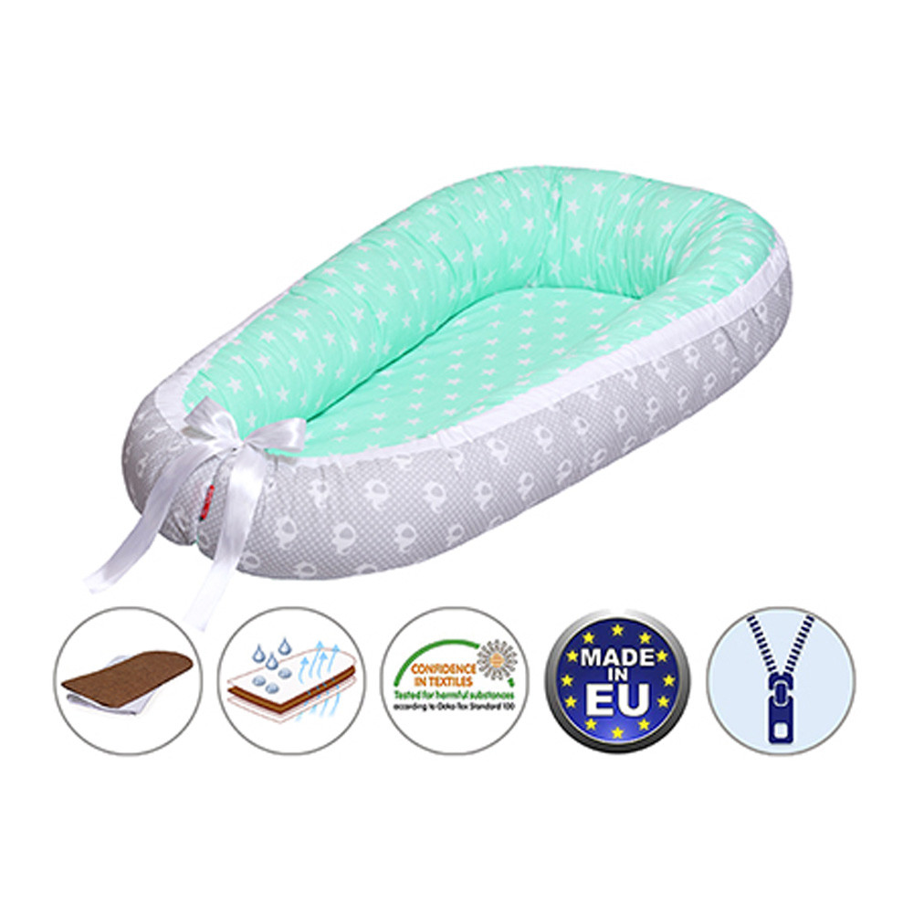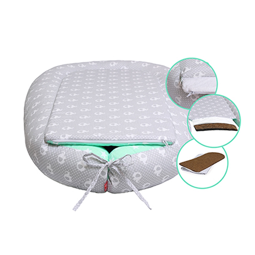 Scamp babafészek kókuszbetétes Green Grey Elephant BF006