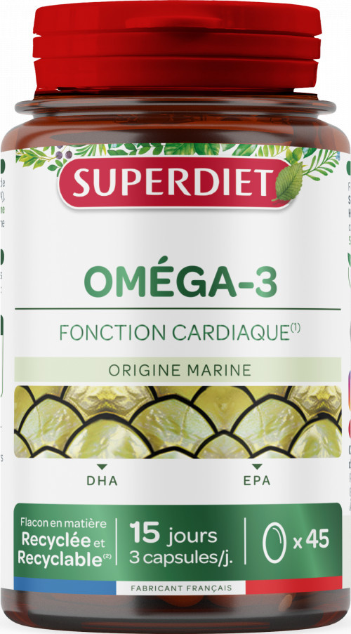 A Superdiet Omega-3 napi 450 mg omega-3-at biztosít, ebből 240 mg EPA és 150 mg DHA. Ezek a zsírsavak, az EPA és a DHA, elismertek a normális szívműködés fenntartásához való hozzájárulásukról.