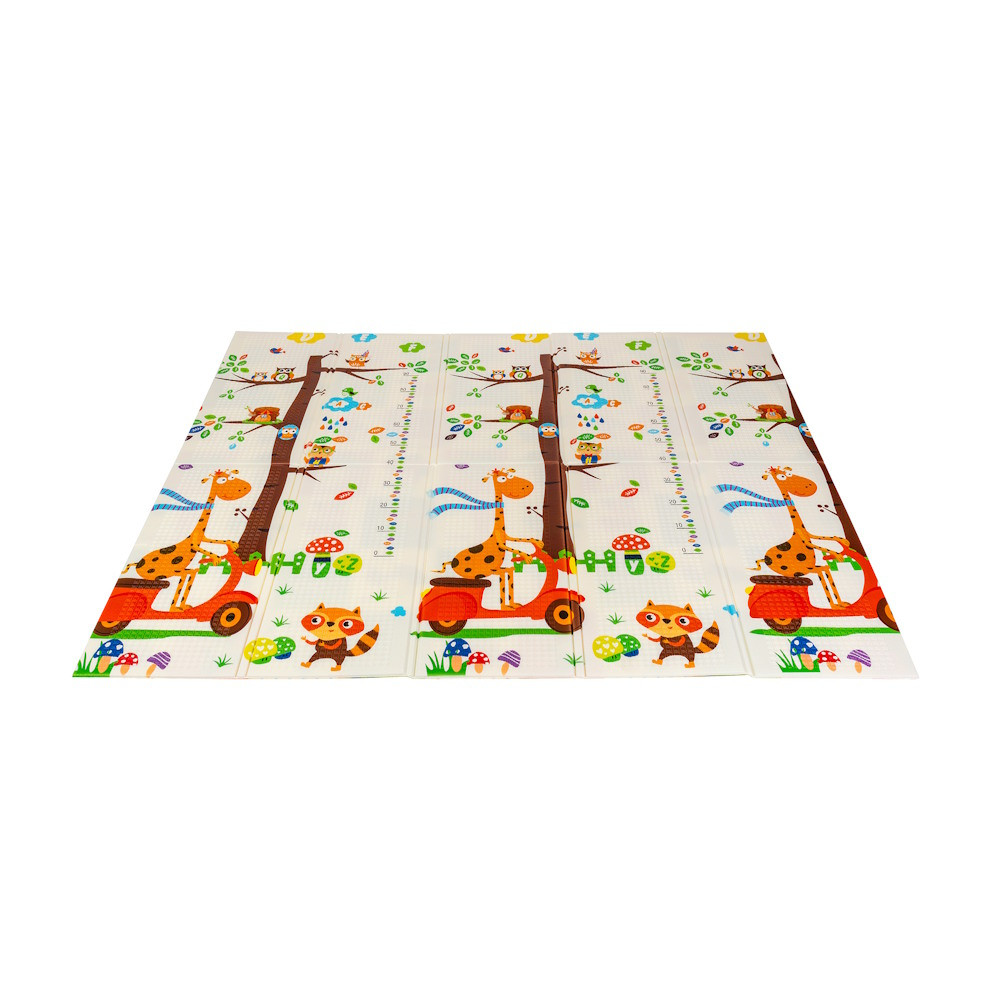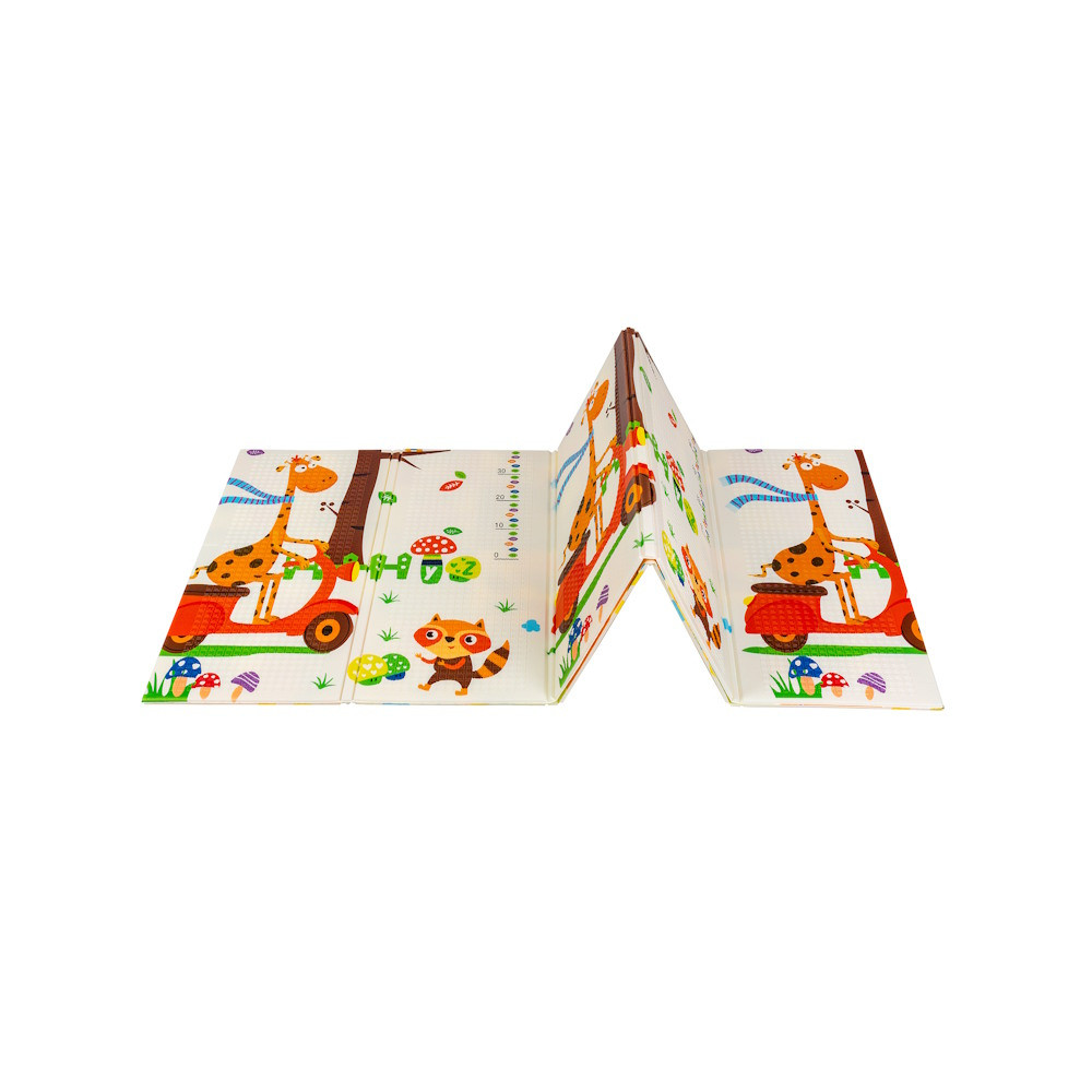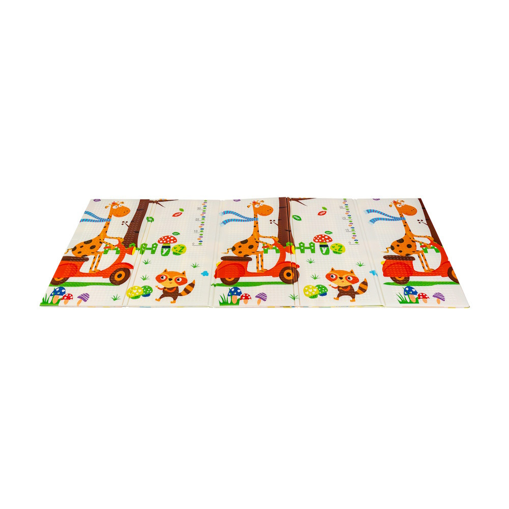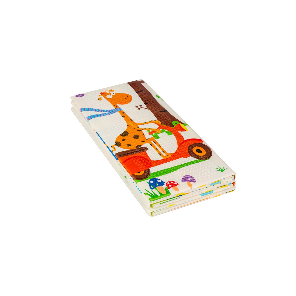 A kétoldalú összehajtható szõnyeg színes és változatos mintákat és textúrákat kínál, amelyek segítik fejleszteni a babák látását és tapintását. Tele van állatok képeivel, amelyek támogatják a legfiatalabb felhasználók intellektuális és motoros fejlõdését.