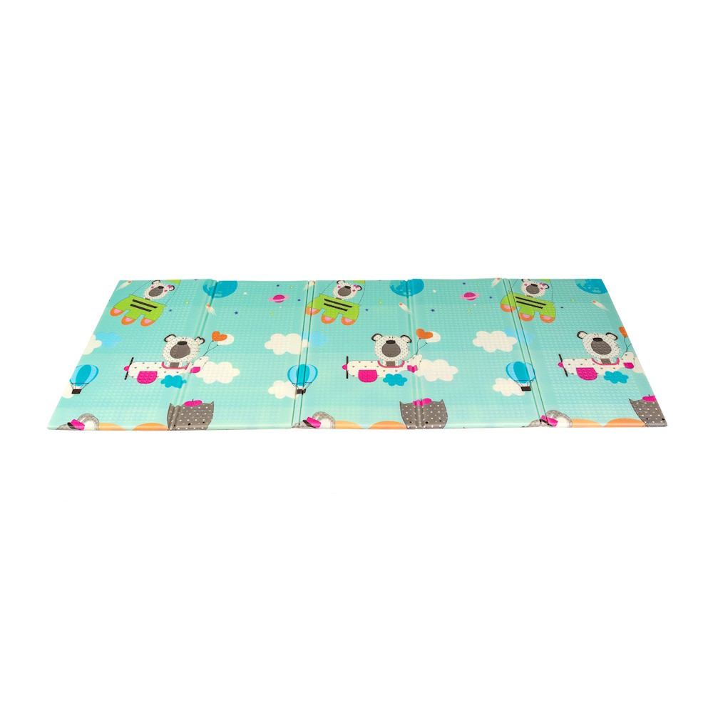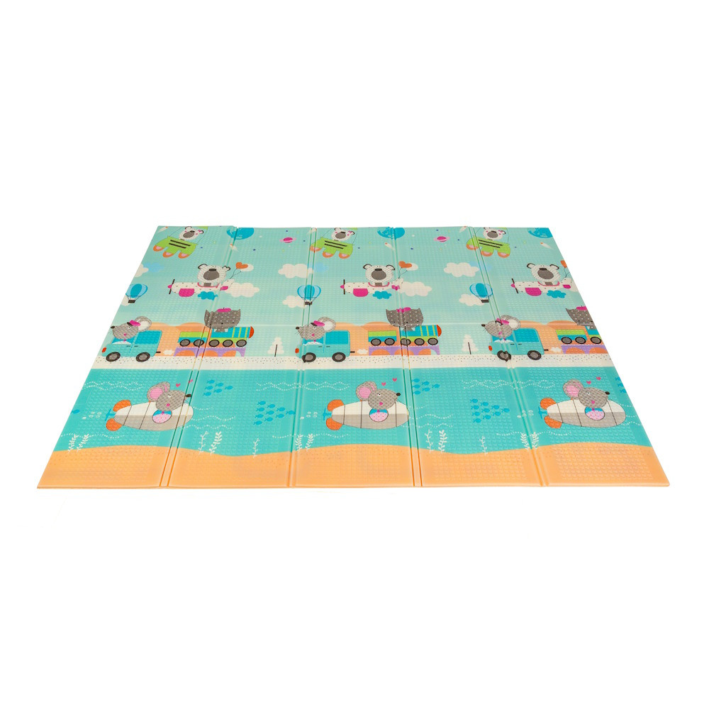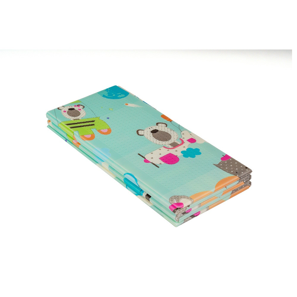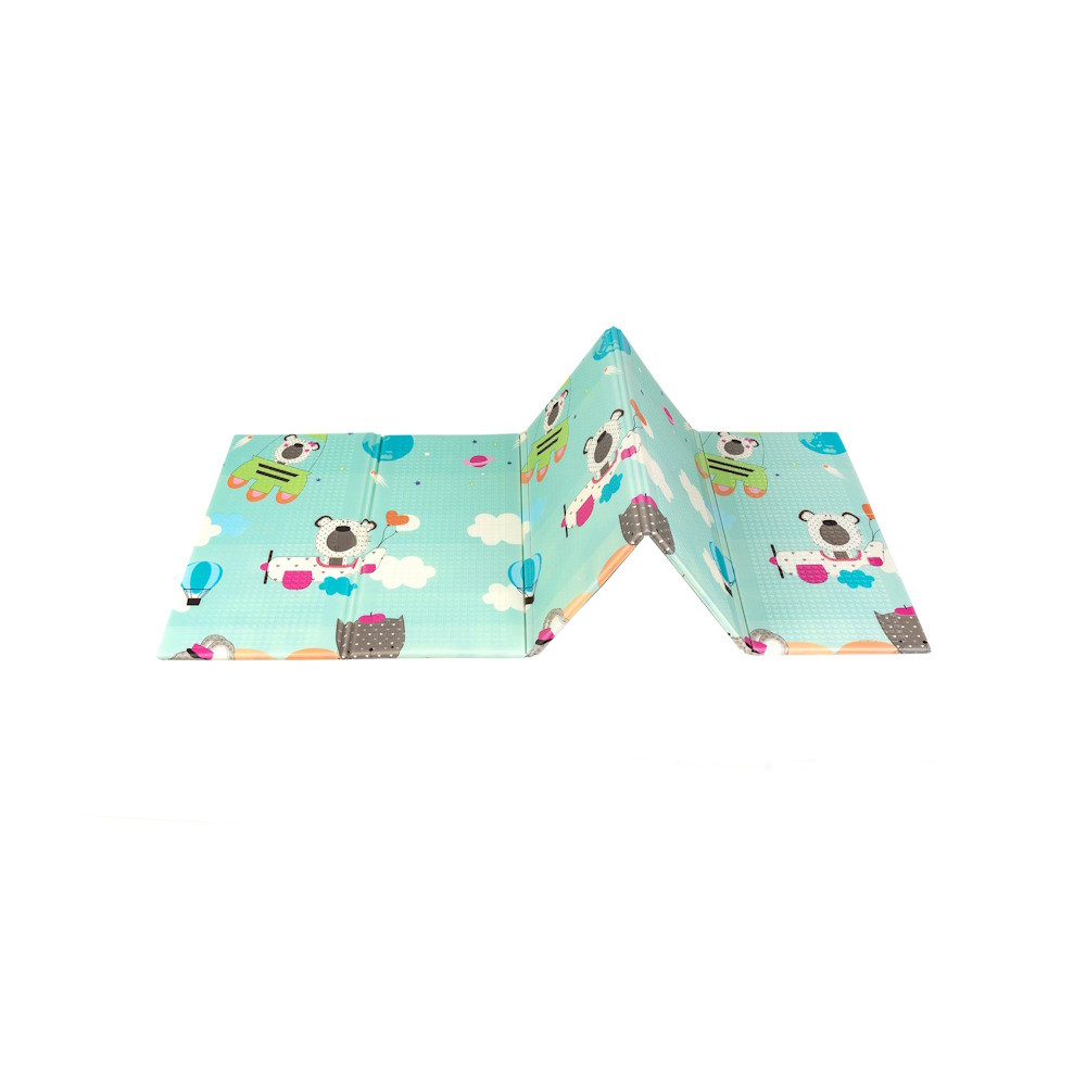 A kétoldalú összehajtható szõnyeg színes és változatos mintákat és textúrákat kínál, amelyek segítik fejleszteni a babák látását és tapintását. Tele van állatok képeivel, amelyek támogatják a legfiatalabb felhasználók intellektuális és motoros fejlõdését.