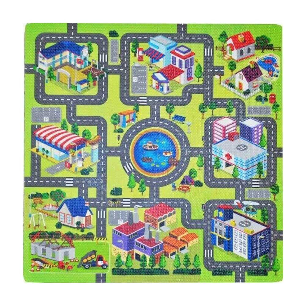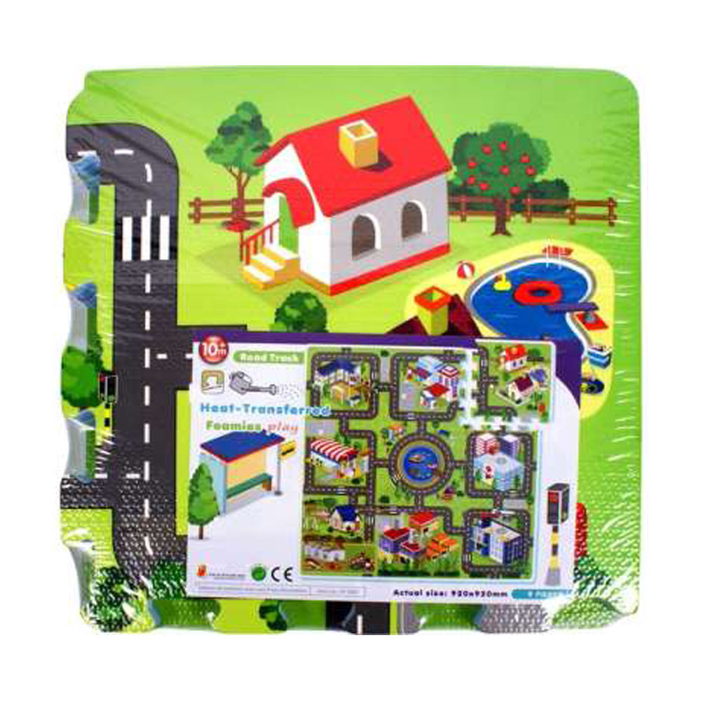 Rakj ki egy várost a habtapi mozaiklapokból! A Nagyváros habszivacs 9 darabos puzzle nagy, puha anyagból készült szivacslapokat tartalmaz, autóutakkal, házakkal dekorálva. A szõnyegen tologathatod a kedvenc játékautóidat, de akár biztonsági játszószõnyegként is használható, ha elesel, a szõnyeg megóv a sérülésektõl. A lapok könnyen egymáshoz illeszthetõk, és többféle módon is le tudod õket rakni. A Nagyváros habszivacs 9 darabos puzzle mozaikdarabjainak mérete: 30 x 30 cm.