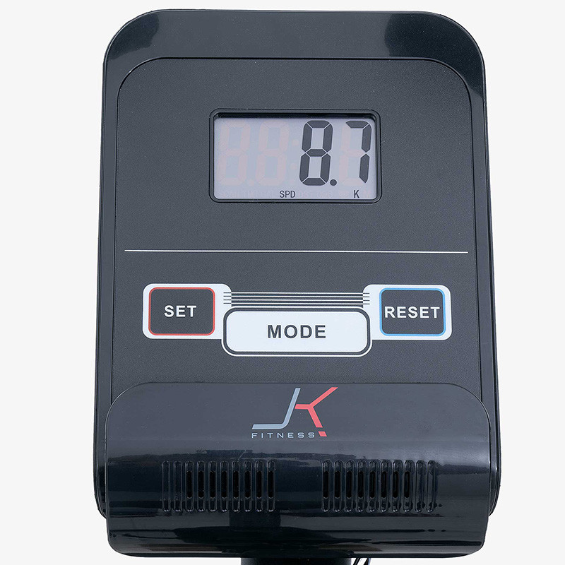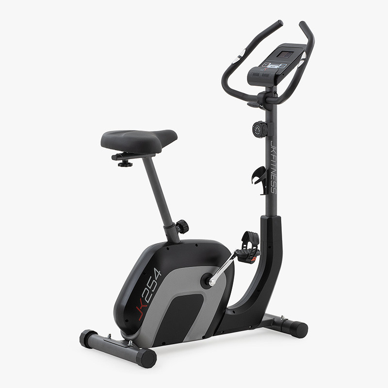 A JK 254 egy közép kategóriás mágneses szobakerékpár, amely 9 kg-os kiegyensúlyozott lendkerékkel és 17 cm-es krómozott pedálkarokkal rendelkezik, lehetővé téve a sima és folyamatos tekerést minden sebességnél; az ellenállás beállítása egy praktikus, könnyen használható manuális tekerővel történik, amely 8 szintet kínál.